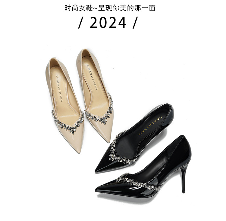 6,826-11 라인스톤 2025 새로운 기질 뾰족한 얇은 굽 숙녀 하이힐 신발스토어 가기