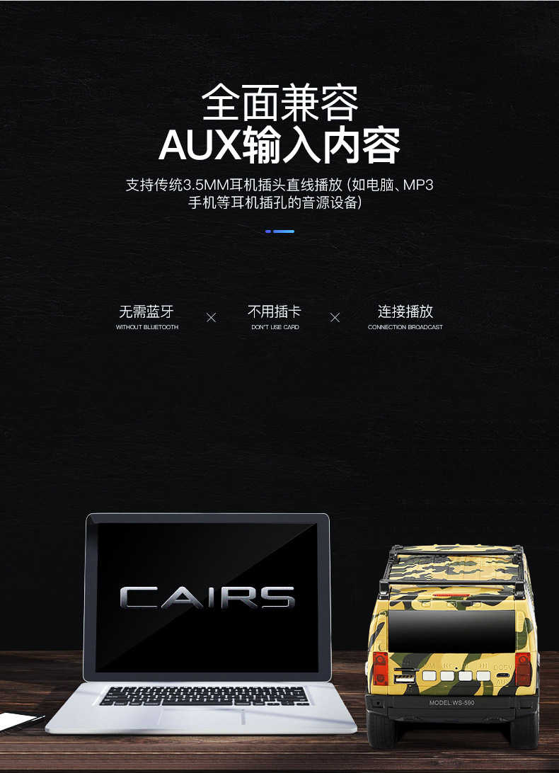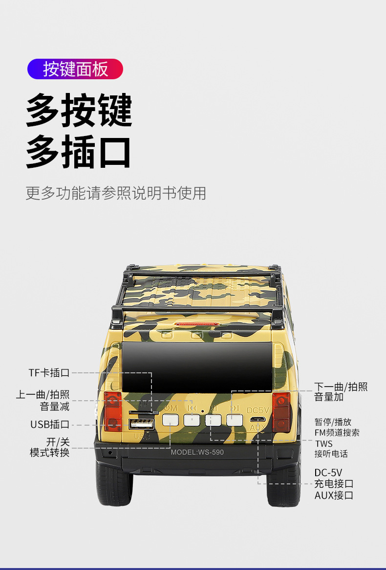 국경을 넘는 인기 상품 WETER 신형 허머 오프로드 자동차 모델 블루투스 스피커 서브우퍼 오디오 고출력 WS-590스토어 가기