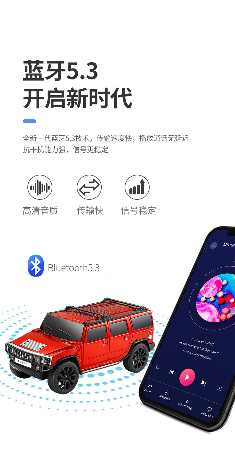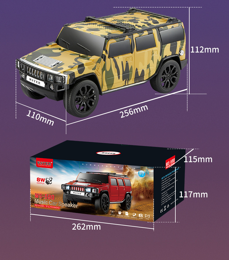 국경을 넘는 인기 상품 WETER 신형 허머 오프로드 자동차 모델 블루투스 스피커 서브우퍼 오디오 고출력 WS-590