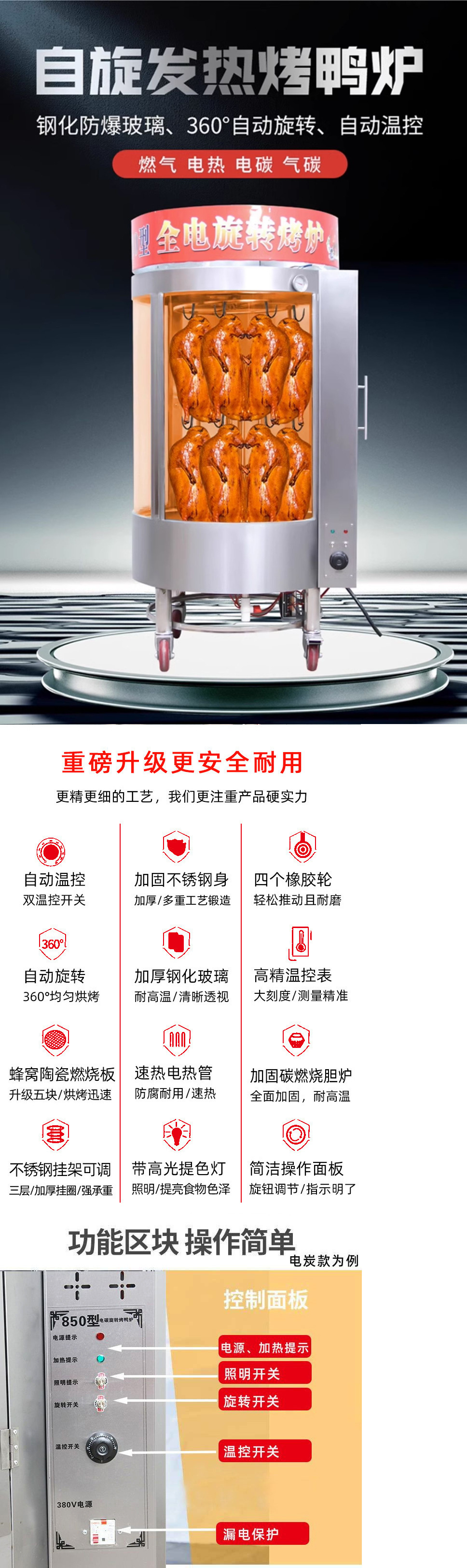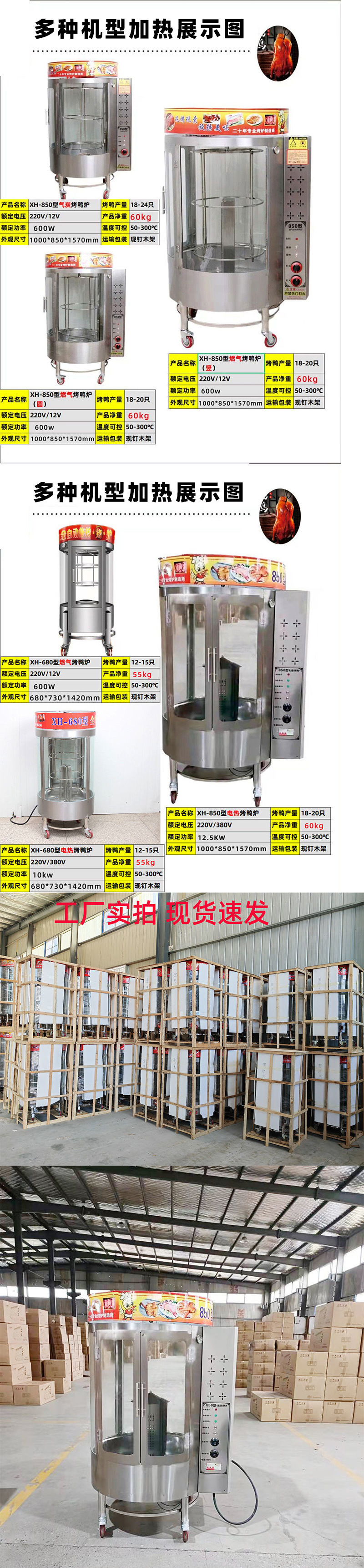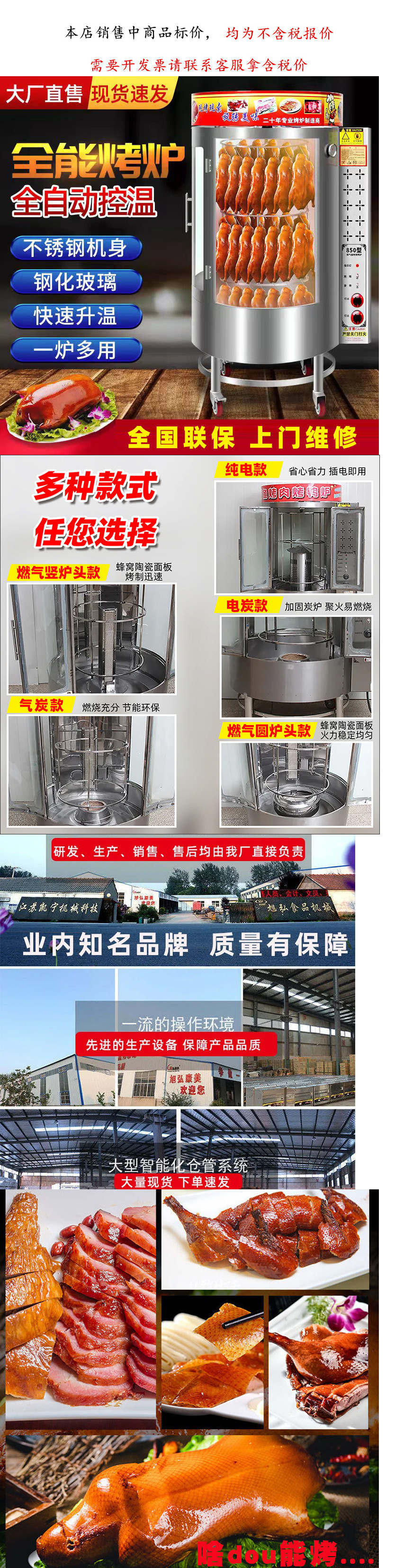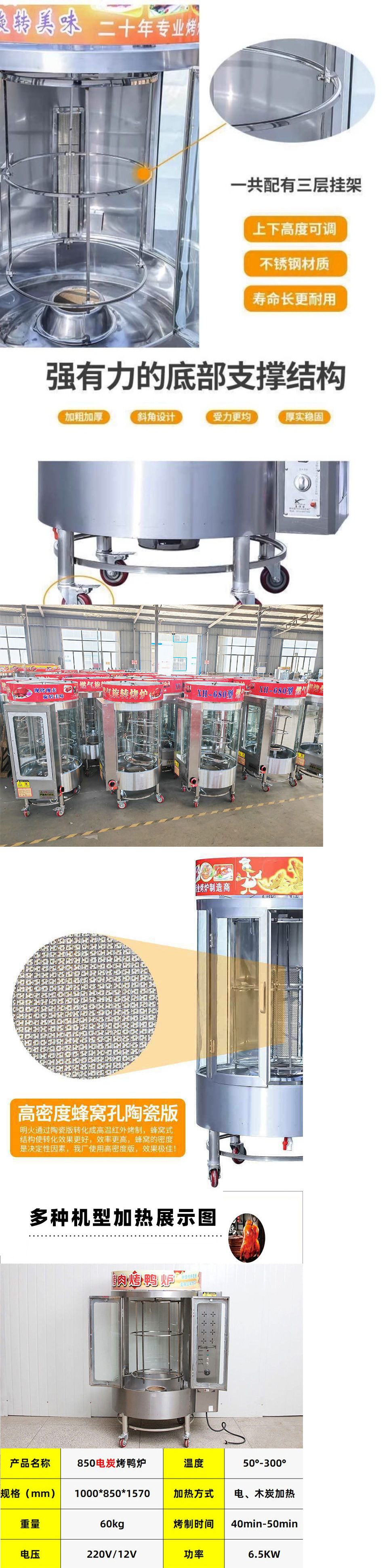 로스트 오리 오븐 완전 자동 바삭한 상업용 850 형 680 숯 로스트 오리 로스트 생선 로터리 전기 이중 목적 오븐스토어 가기