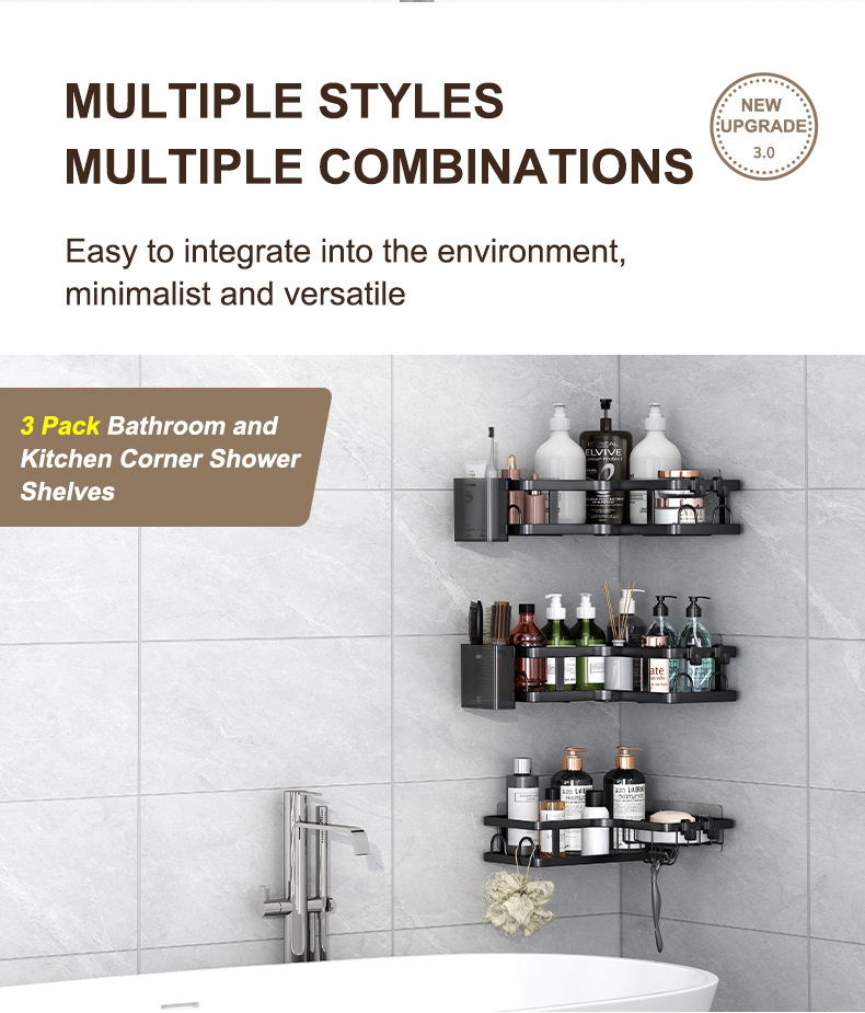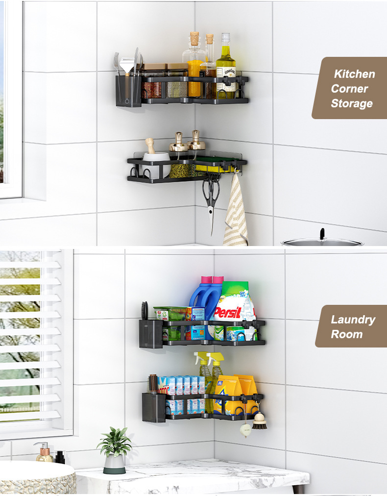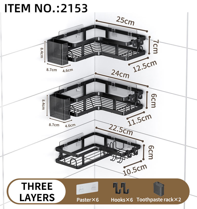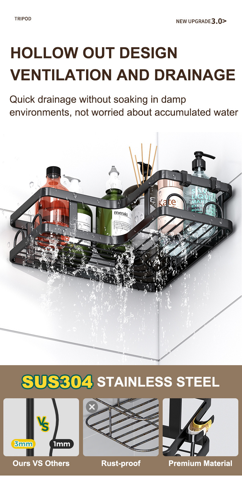 욕실 화장실 펀치 프리 코너 보관 랙 3 층 세트 화장실 삼각형 철 저장 랙 국경스토어 가기