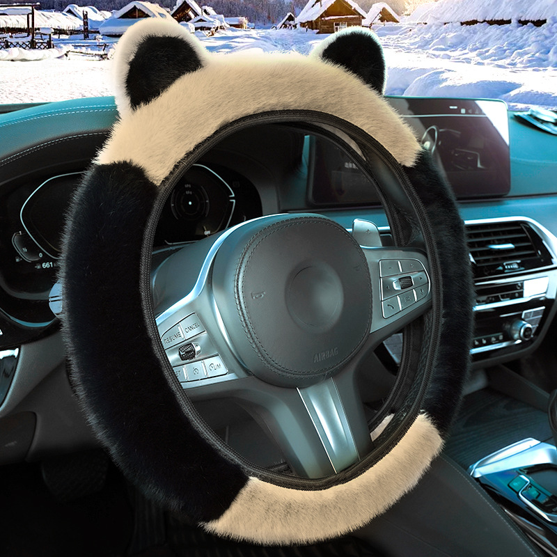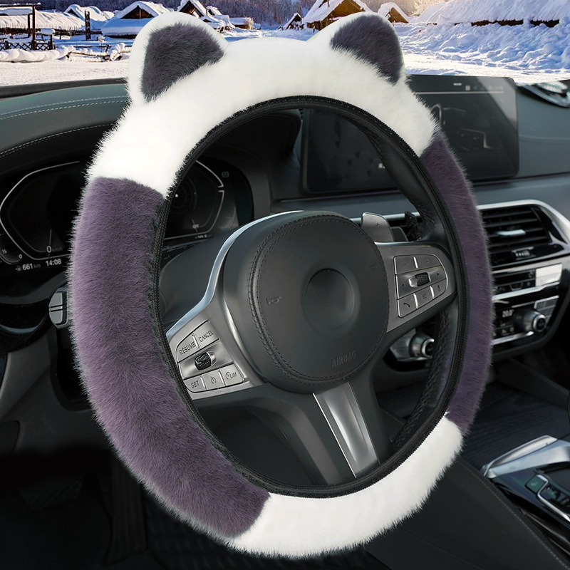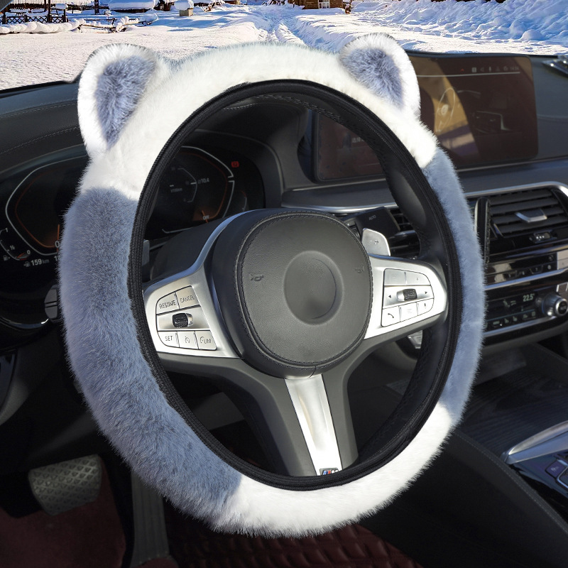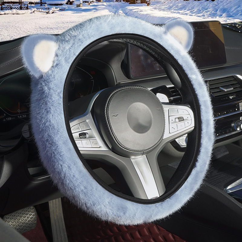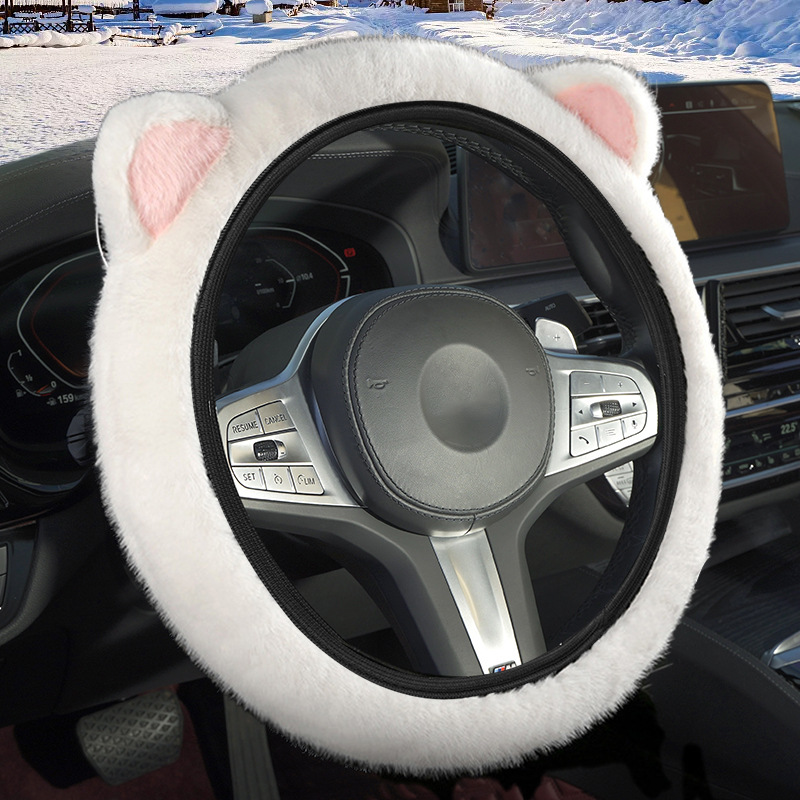 겨울 자동차 스티어링 휠 커버 플러시 핸들 커버 스티어링 휠은 안쪽 반지 고양이 귀 국경을 넘어 손 탄성을 얼리지 않습니다.