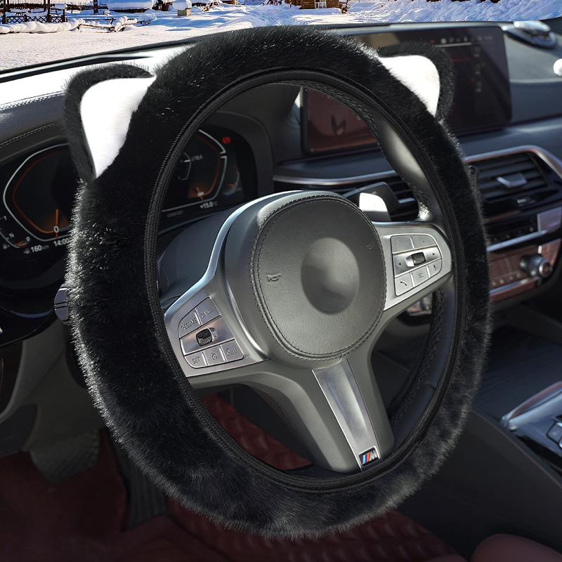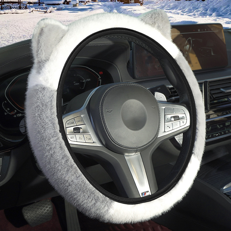겨울 자동차 스티어링 휠 커버 플러시 핸들 커버 스티어링 휠은 안쪽 반지 고양이 귀 국경을 넘어 손 탄성을 얼리지 않습니다.스토어 가기