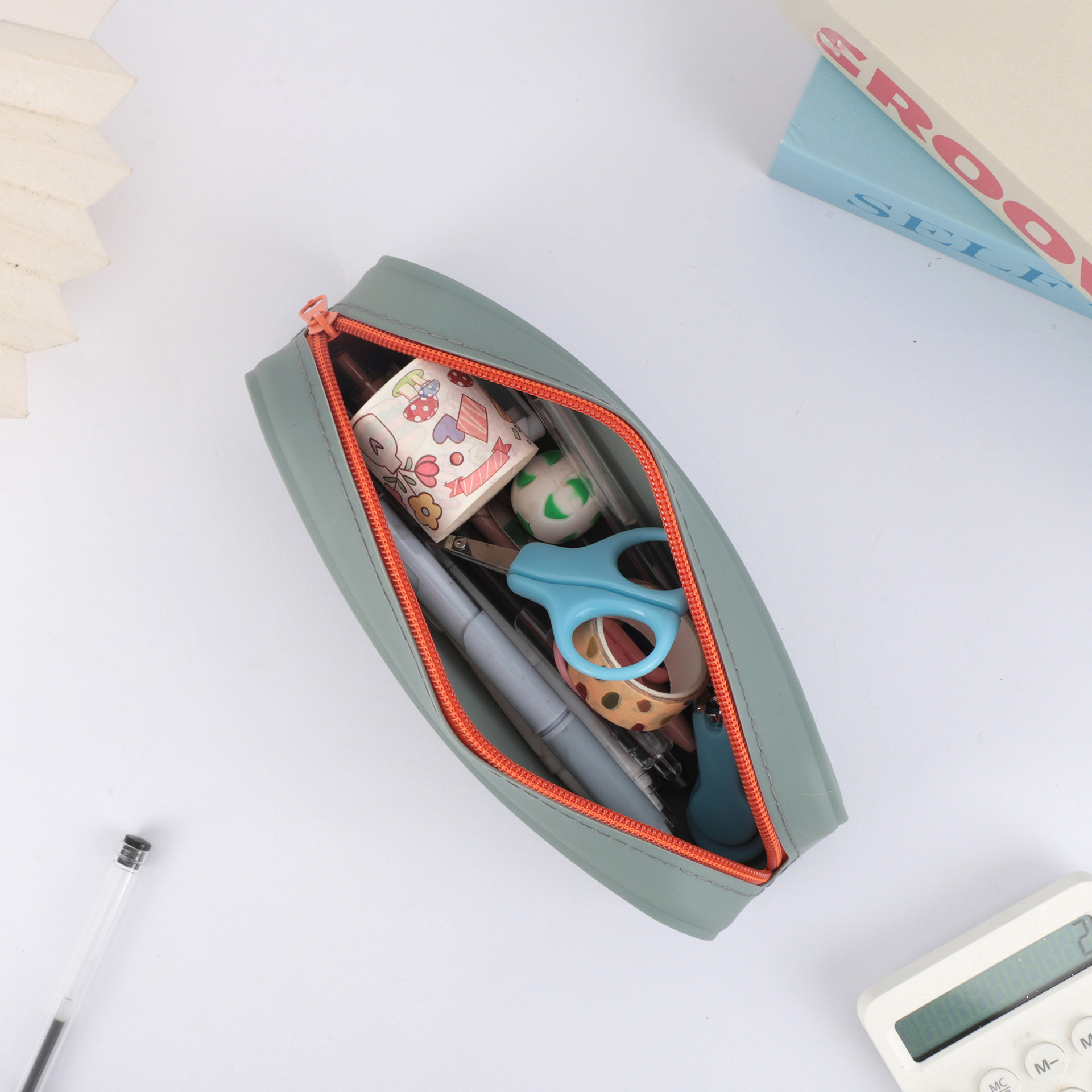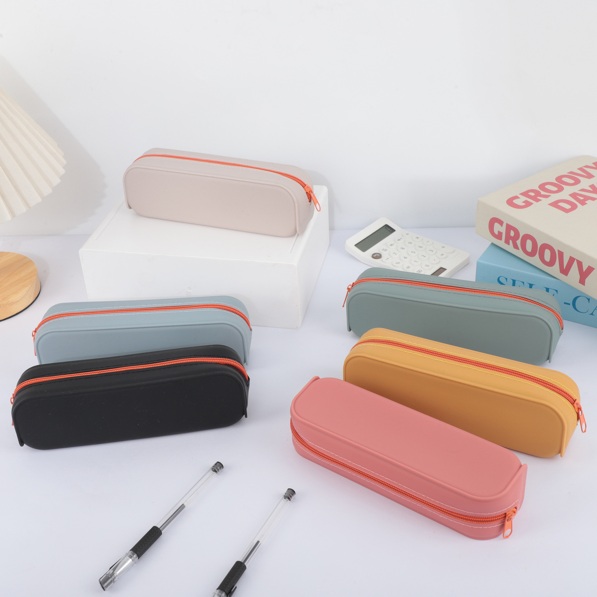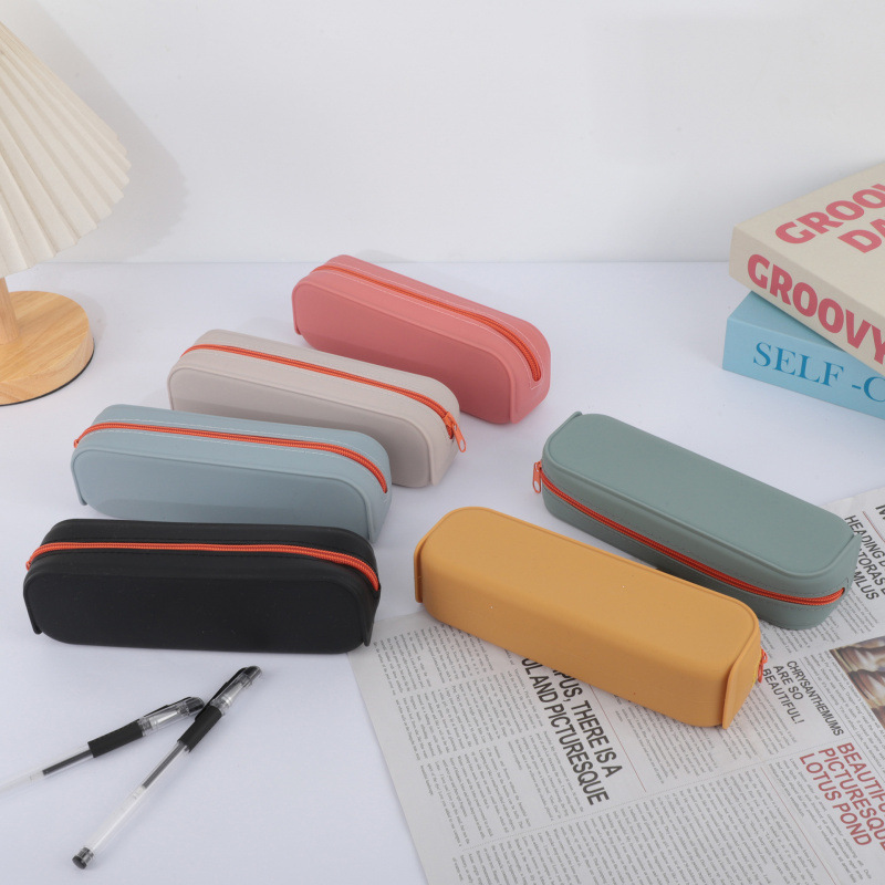 창조적 인 직사각형 실리콘 연필 케이스 학습 사무실 보관 문구 상자 컬러 실리콘 연필 케이스 인쇄 가능한 로고 배치