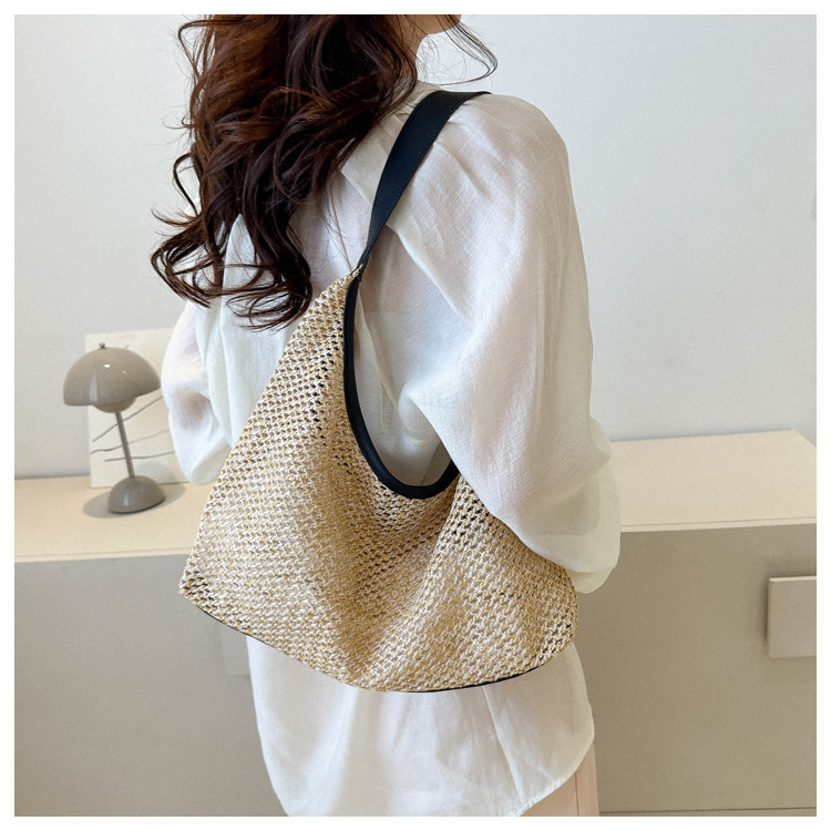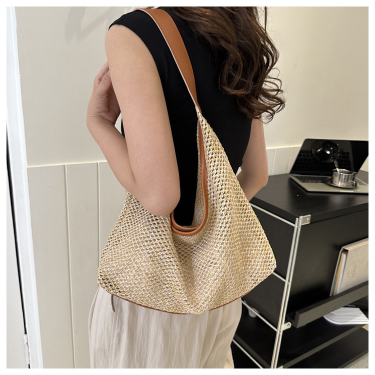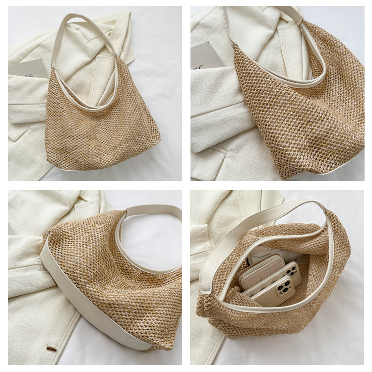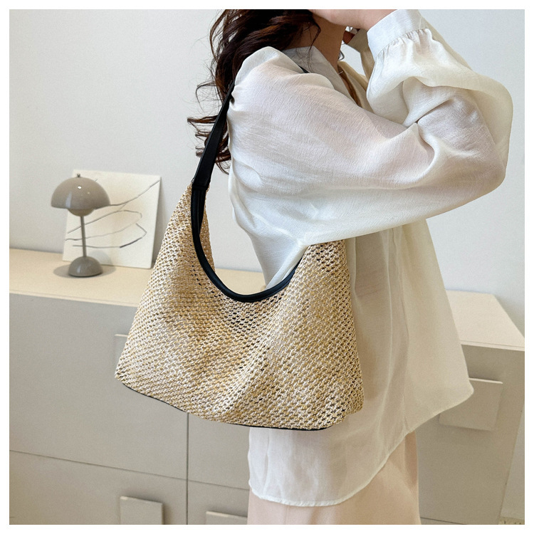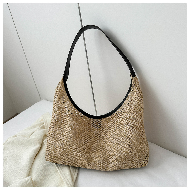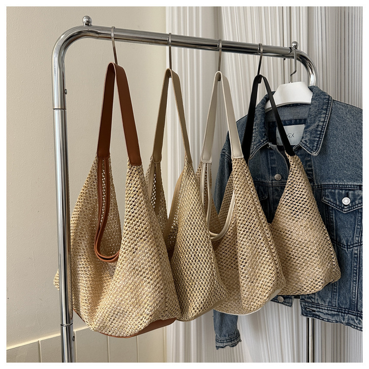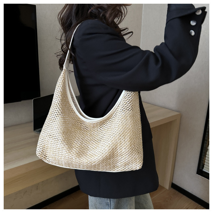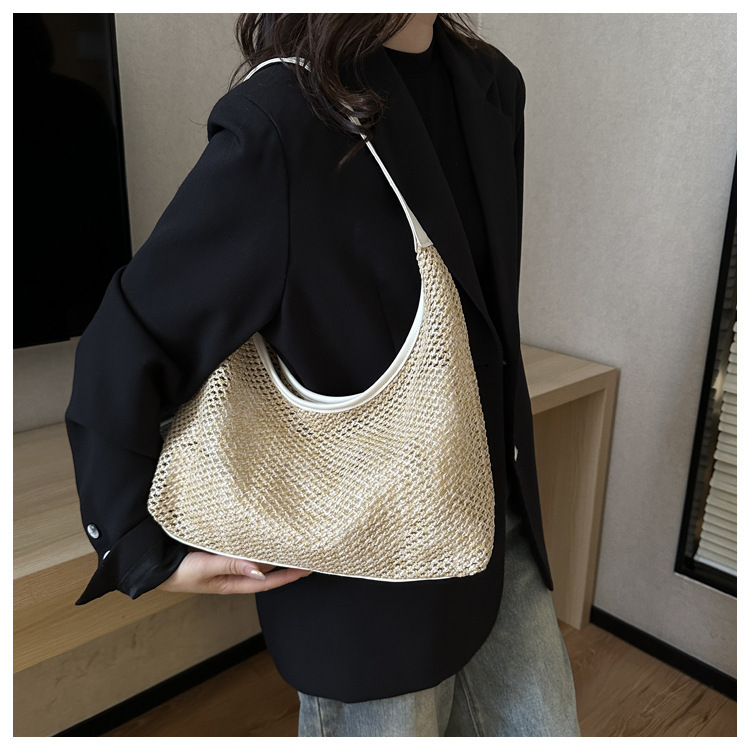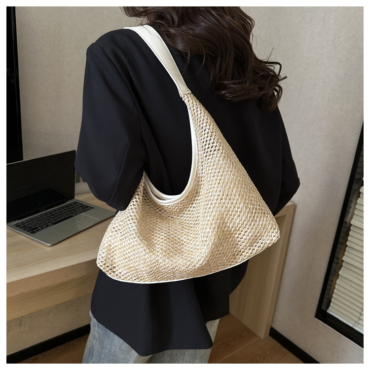 밀짚 대용량 패션 캐주얼 가방 2024 여름 인기있는 한국 스타일 짠 어깨 언더암 가방 토트 백스토어 가기