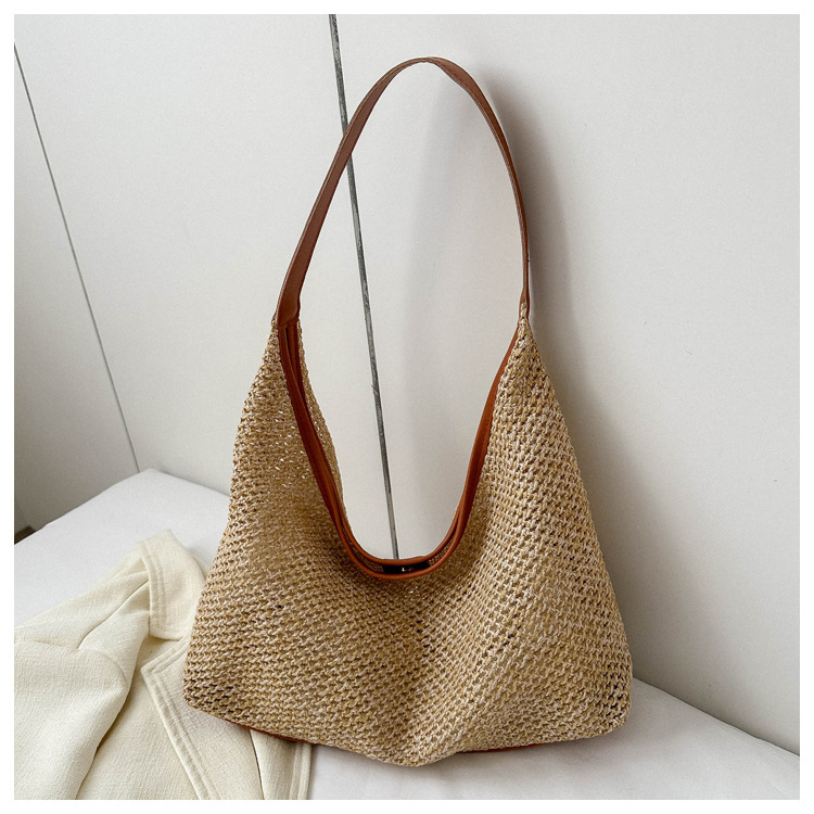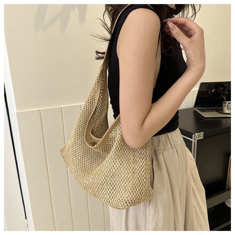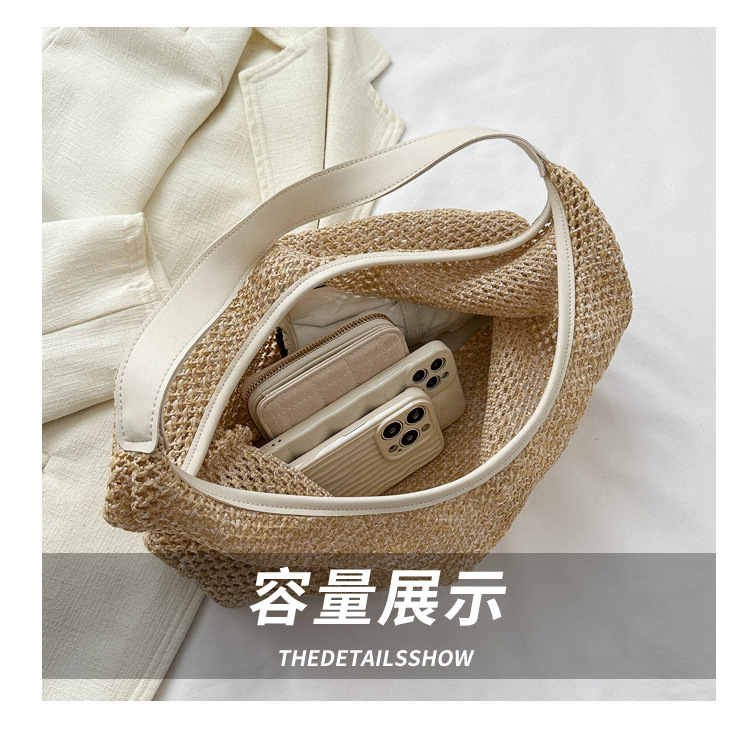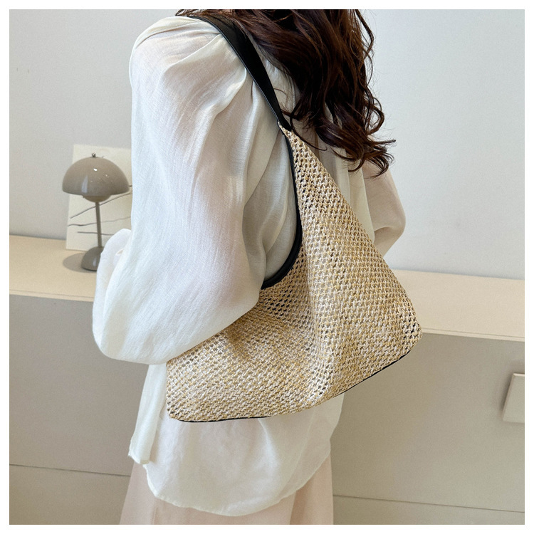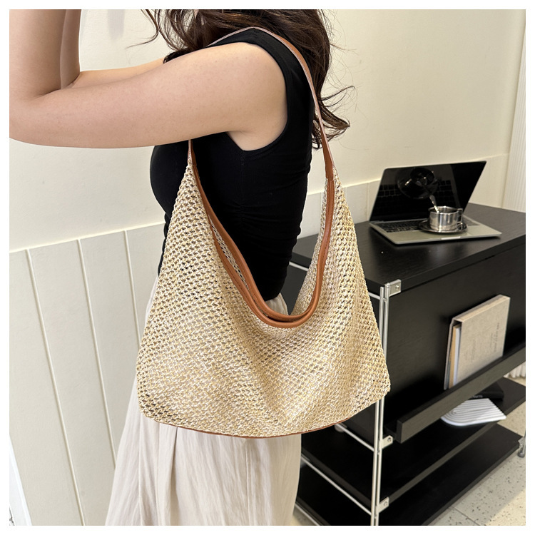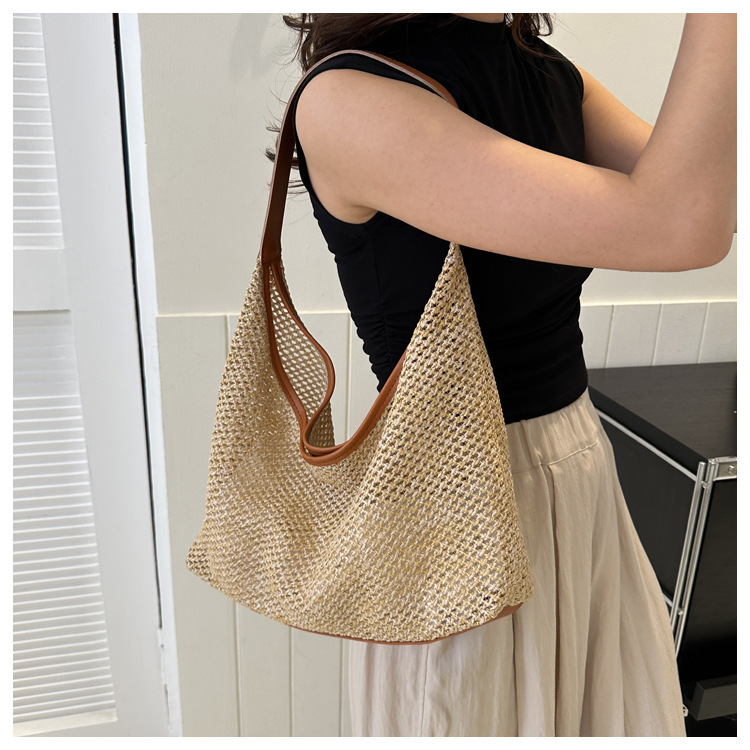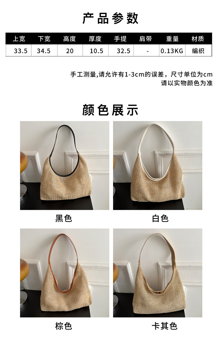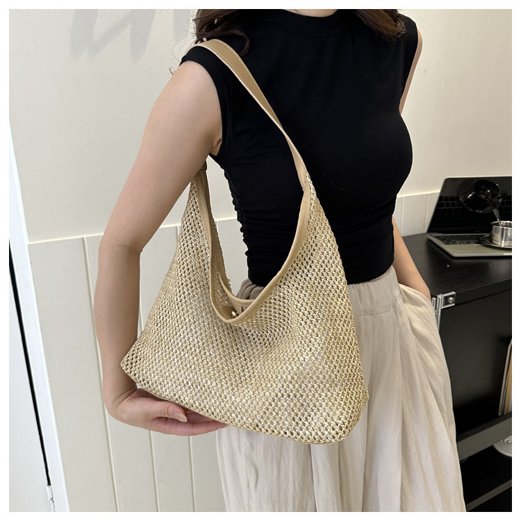밀짚 대용량 패션 캐주얼 가방 2024 여름 인기있는 한국 스타일 짠 어깨 언더암 가방 토트 백스토어 가기