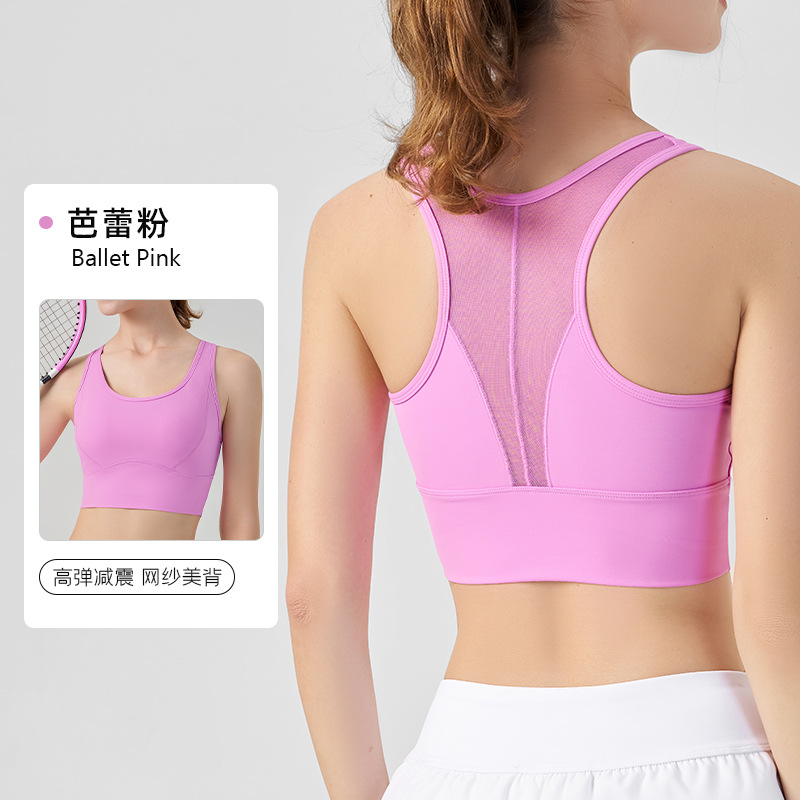 가슴 패드가있는 여름 메쉬 통기성 누드 스포츠 브라 필라테스 고정 컵 여성용 편안한 피트니스 요가 조끼스토어 가기