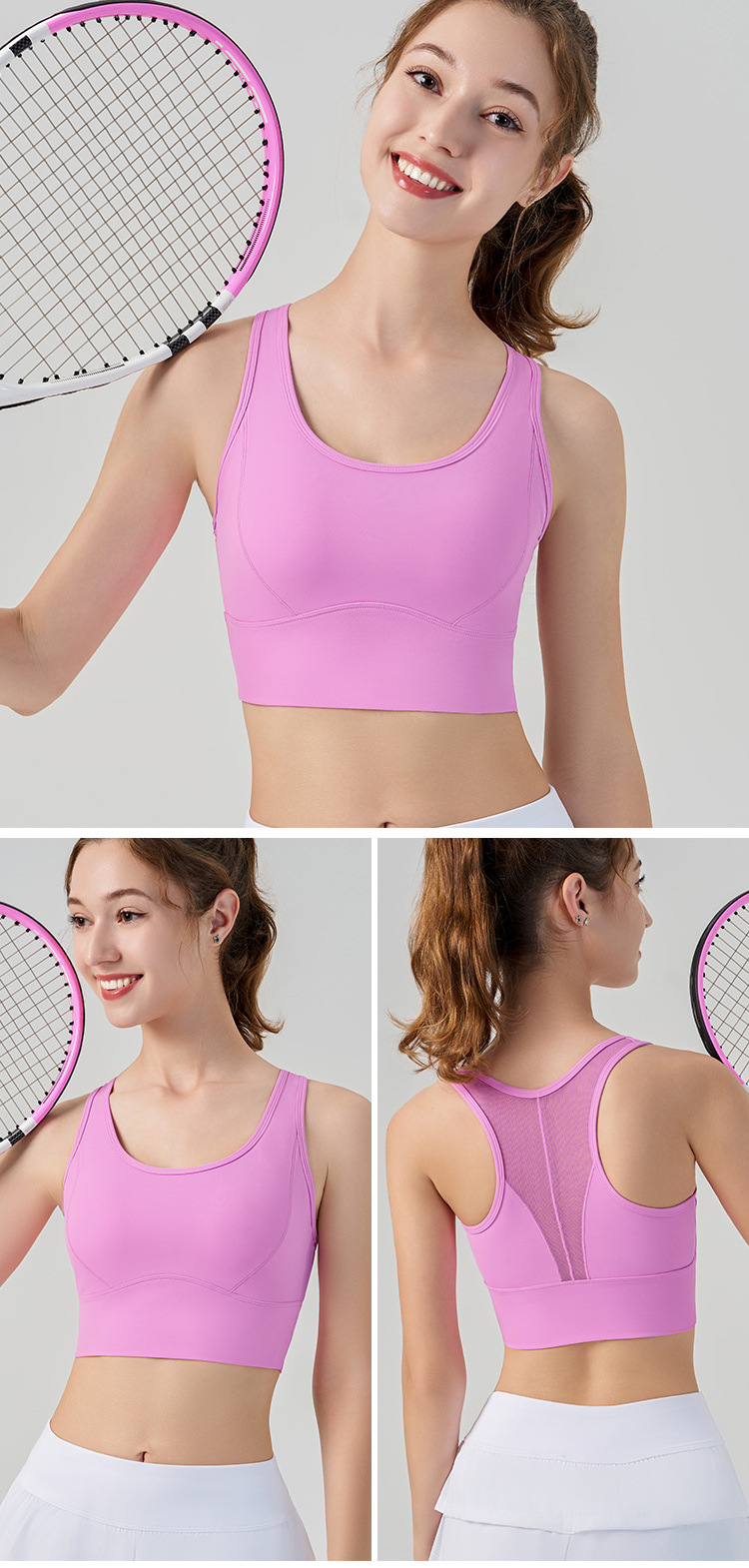 가슴 패드가있는 여름 메쉬 통기성 누드 스포츠 브라 필라테스 고정 컵 여성용 편안한 피트니스 요가 조끼