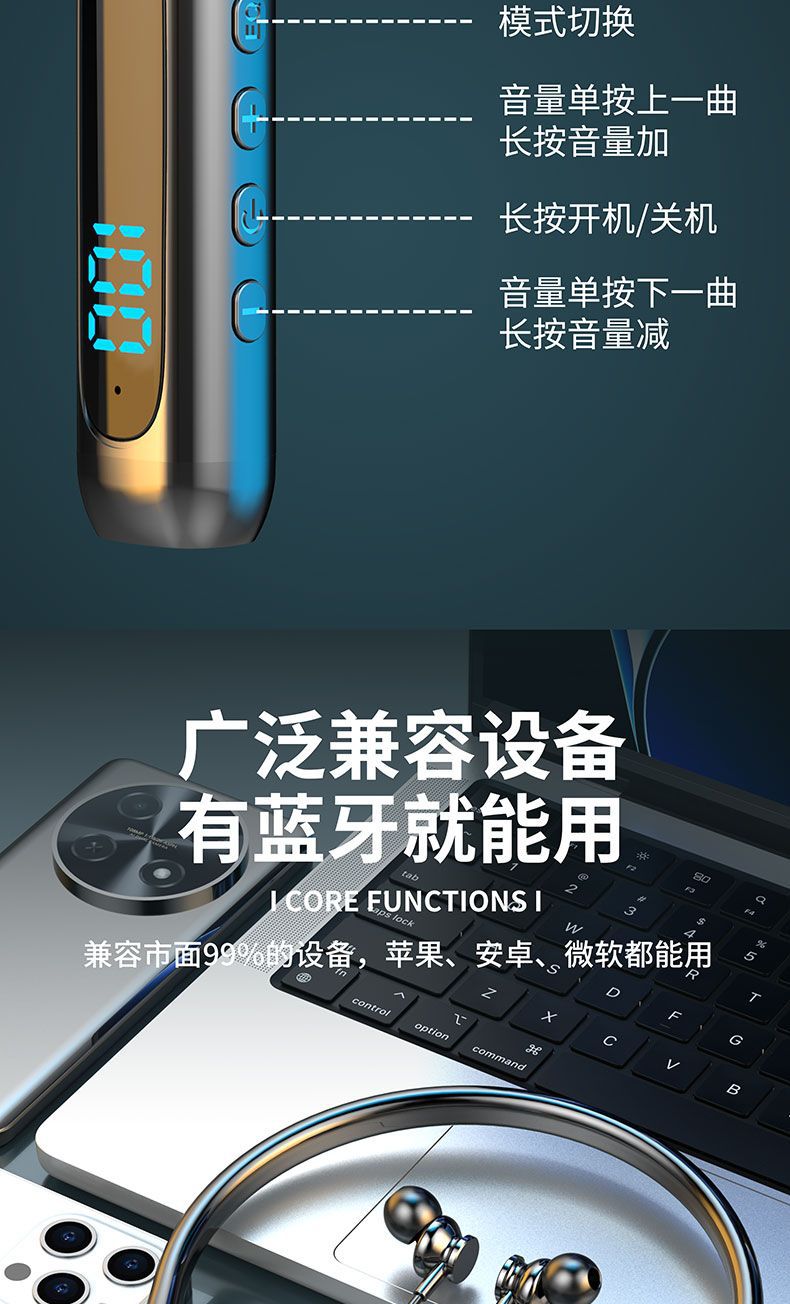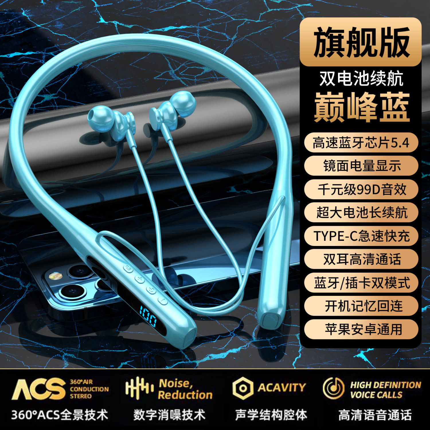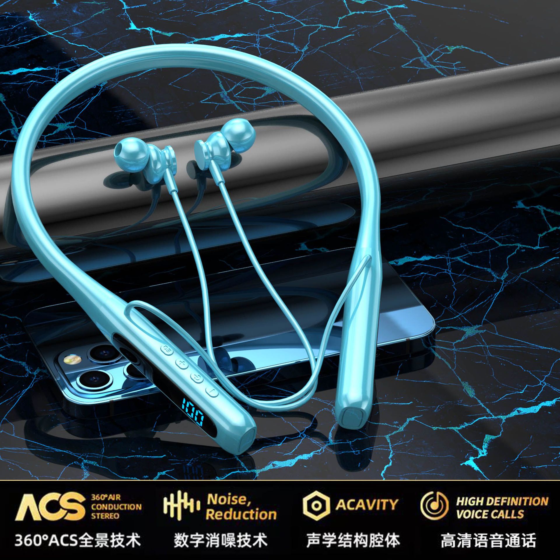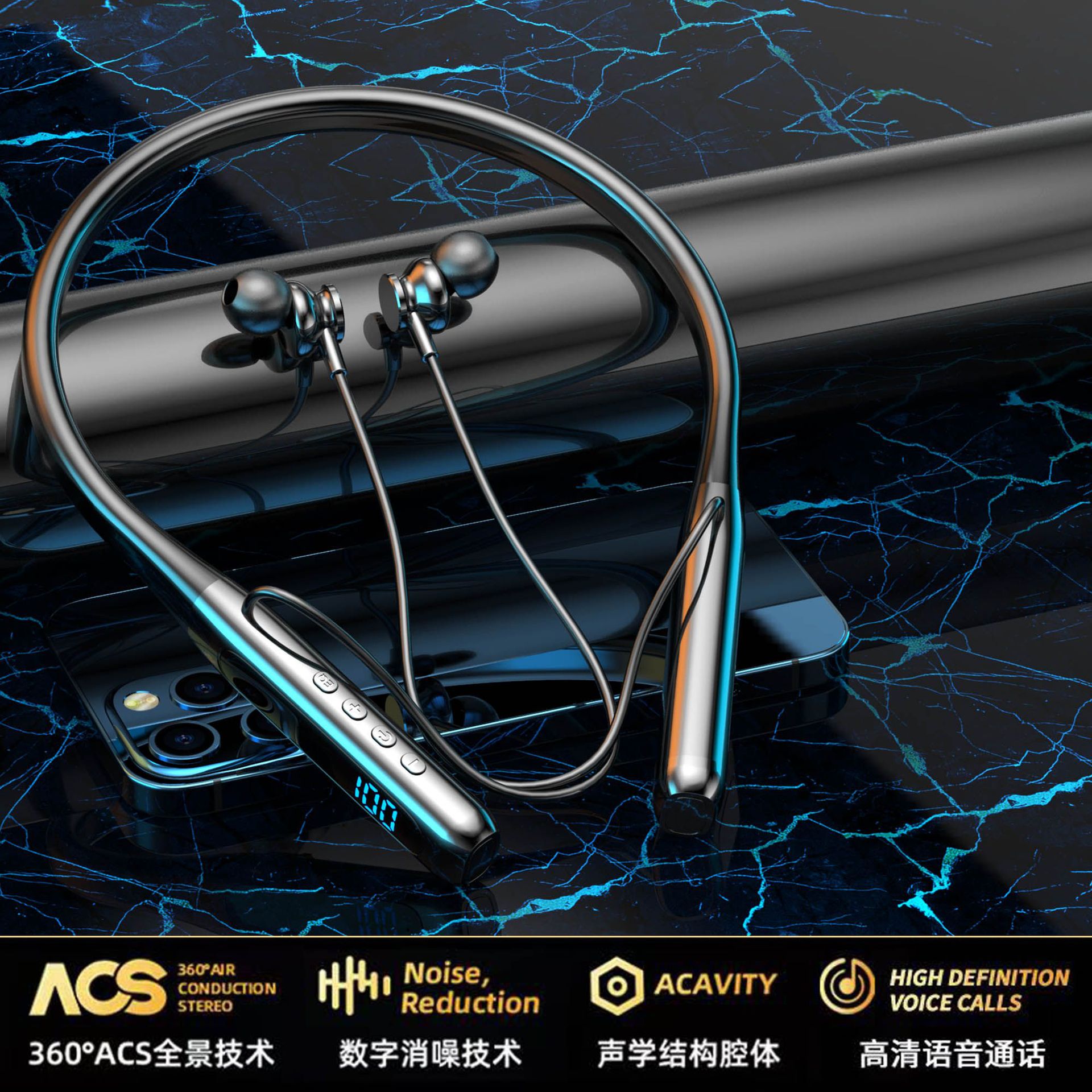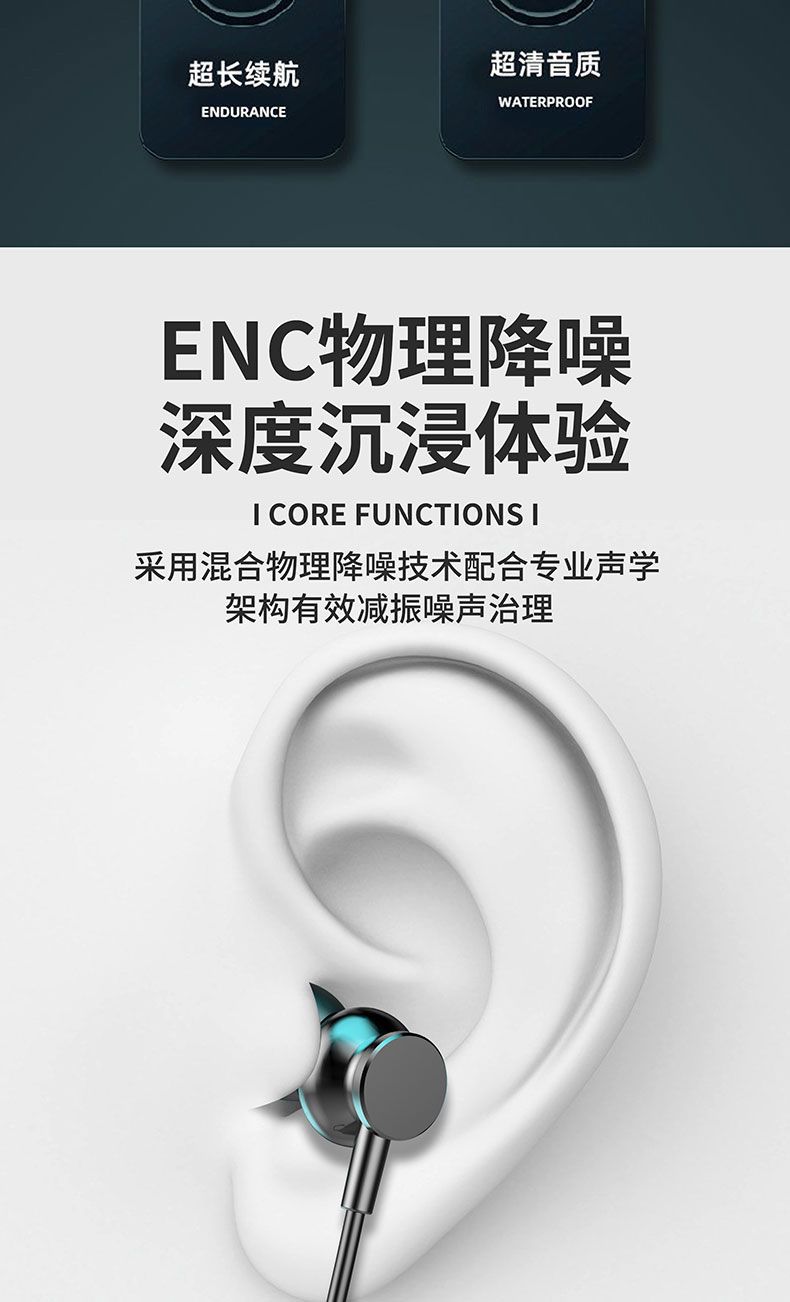 새로운 무선 블루투스 목 헤드셋 울트라 긴 대기 카드 스포츠 높은 음질 소음 감소 휴대 전화 도매스토어 가기