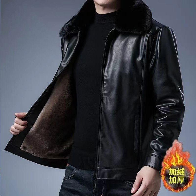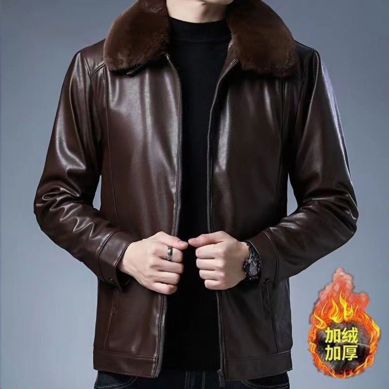 [기모 얇은 섹션] 중년 및 노인을 위한 증오한 pu 남성 가죽 자켓 가을과 겨울 아빠의 코트 가죽 자켓