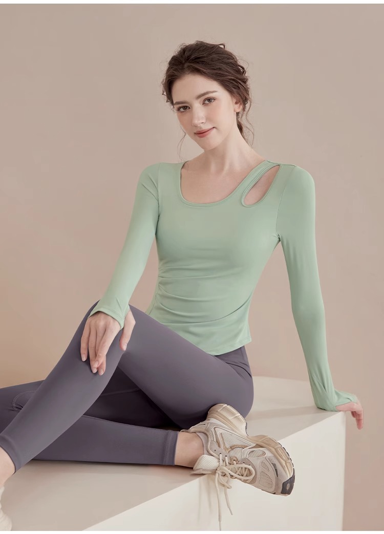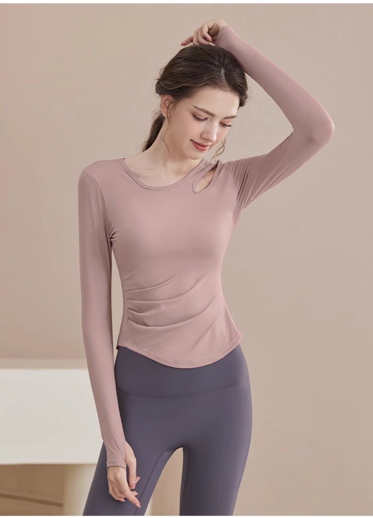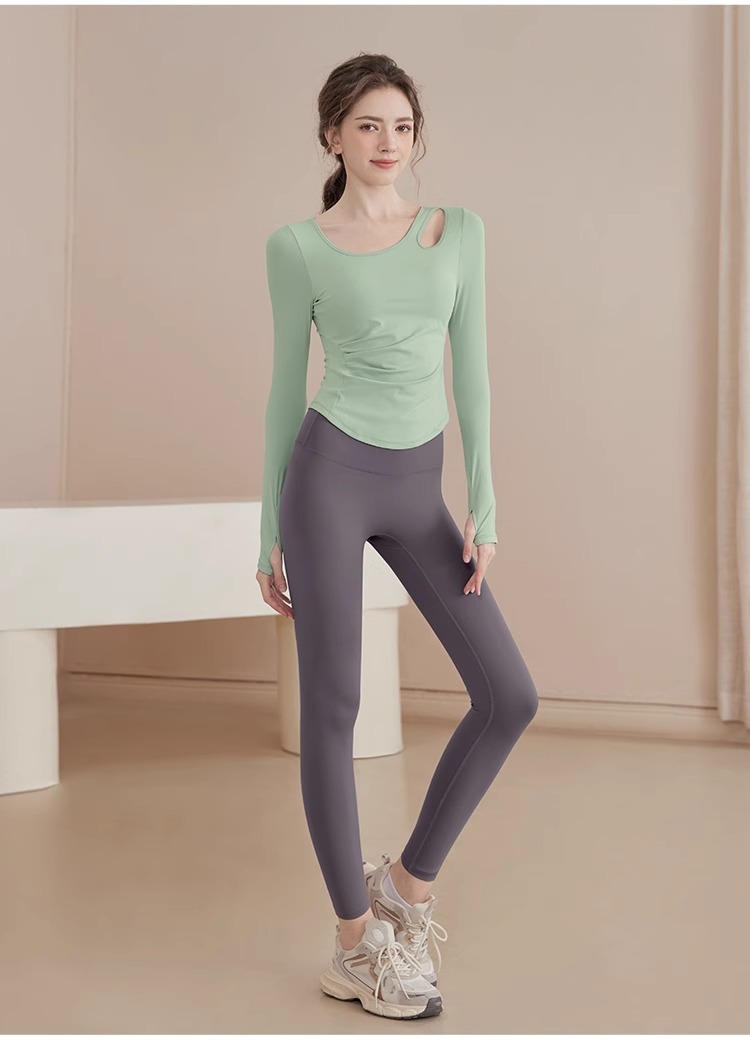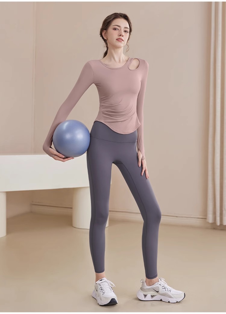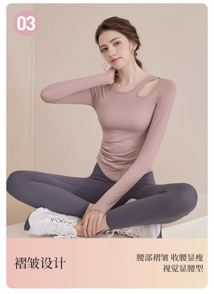 2025 새로운 봄과 여름 훈련 의류 긴 소매 세트 슬림 빠른 드라이 라이딩 필라테스 피트니스 긴 소매 여성 도매
