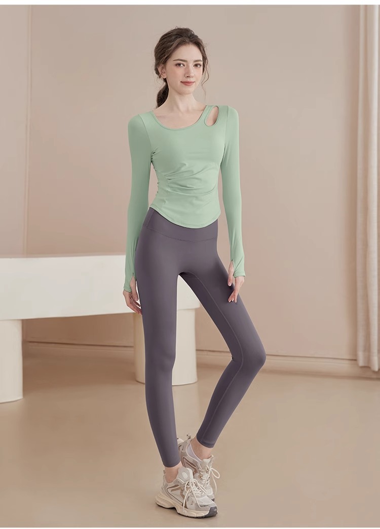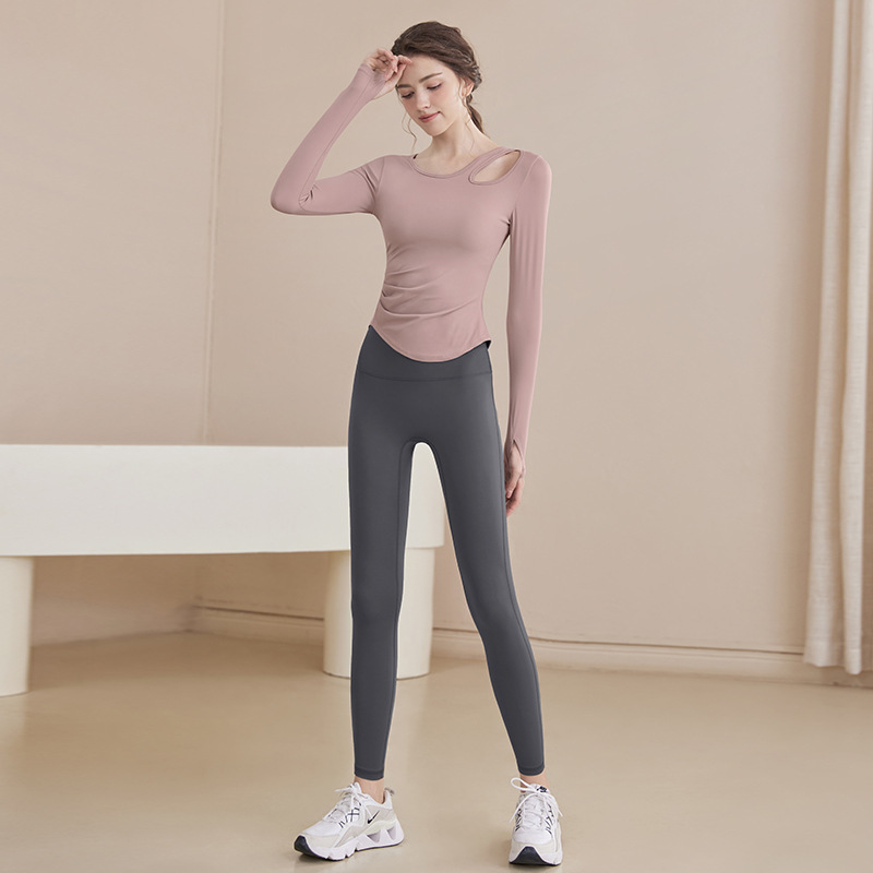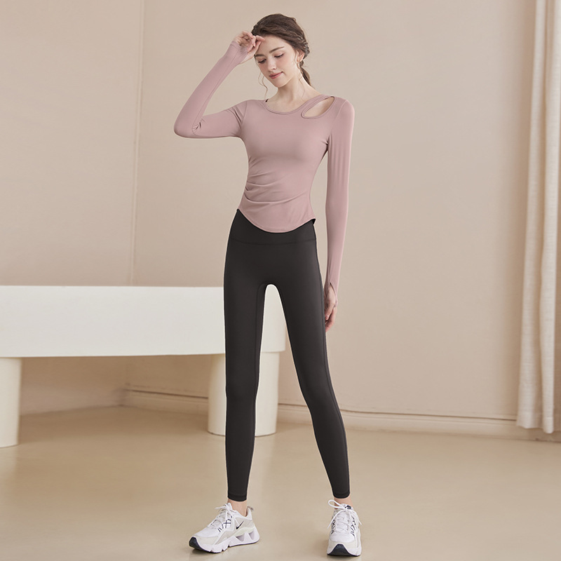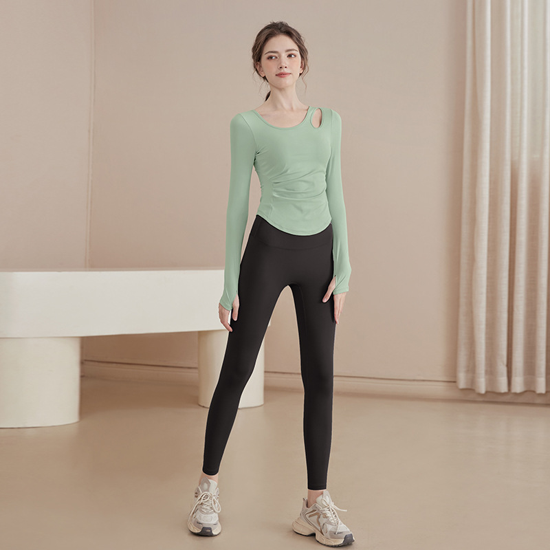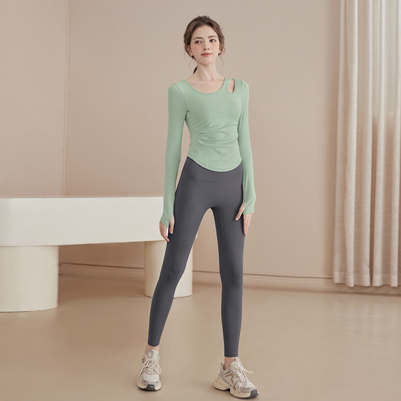 2025 새로운 봄과 여름 훈련 의류 긴 소매 세트 슬림 빠른 드라이 라이딩 필라테스 피트니스 긴 소매 여성 도매스토어 가기