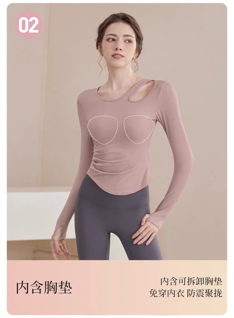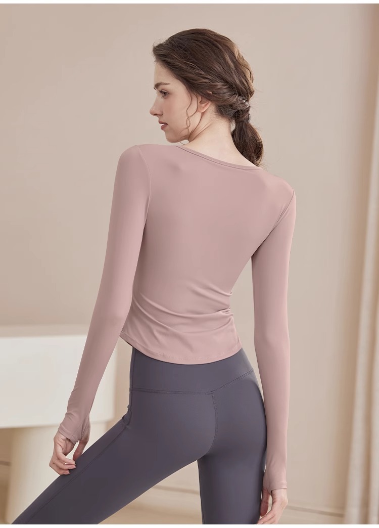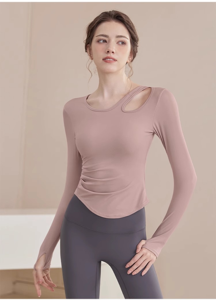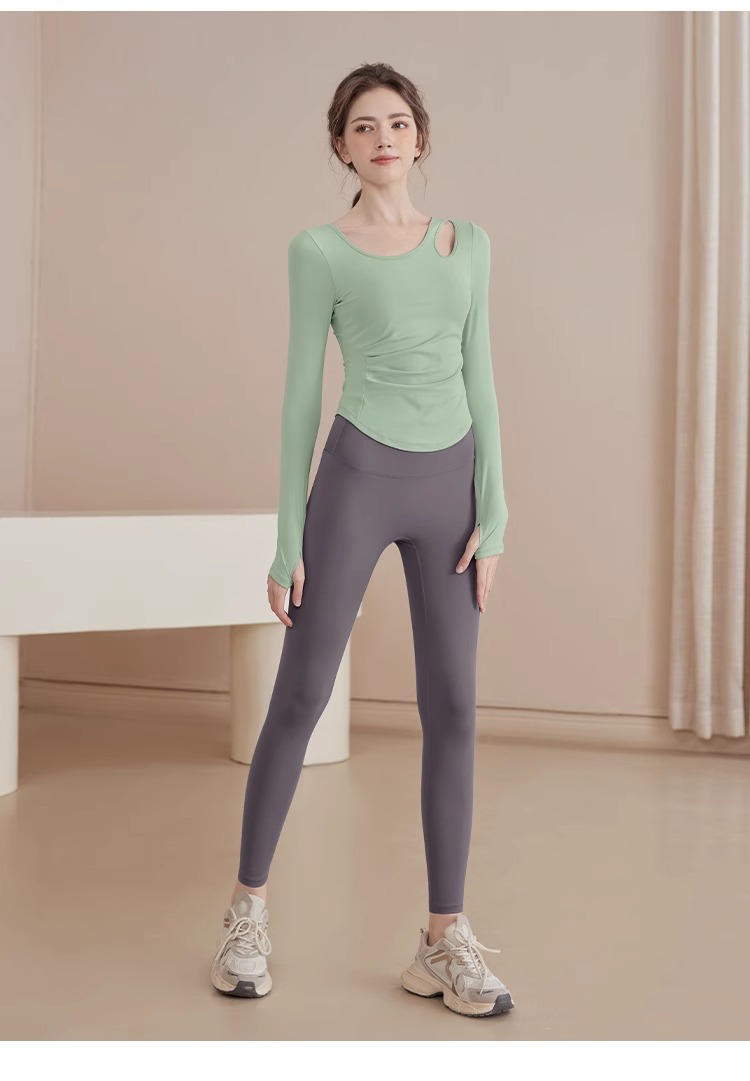 2025 새로운 봄과 여름 훈련 의류 긴 소매 세트 슬림 빠른 드라이 라이딩 필라테스 피트니스 긴 소매 여성 도매스토어 가기