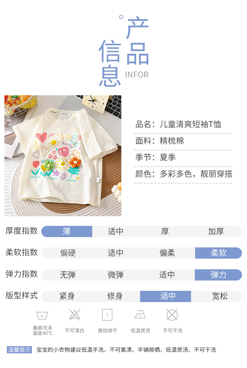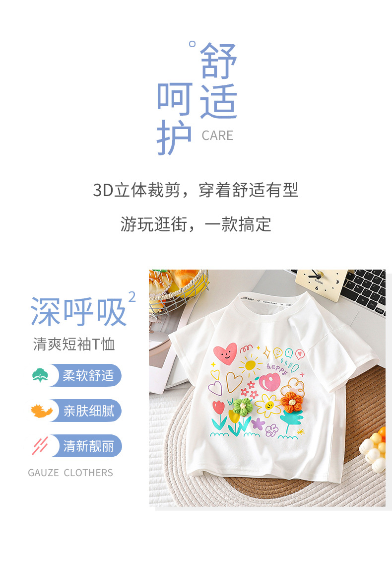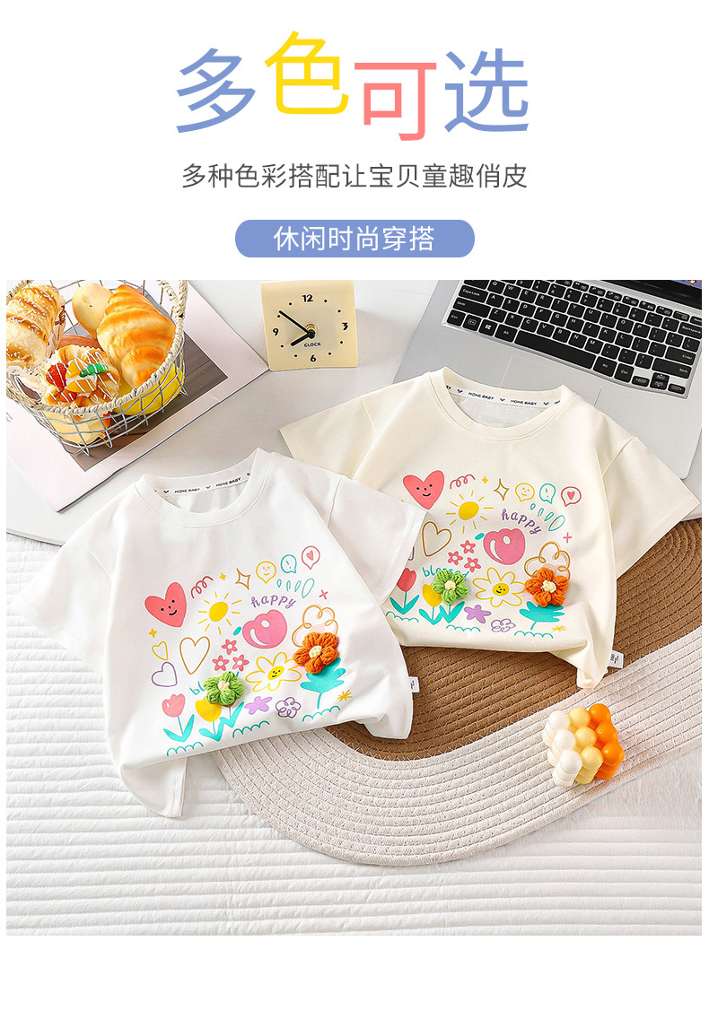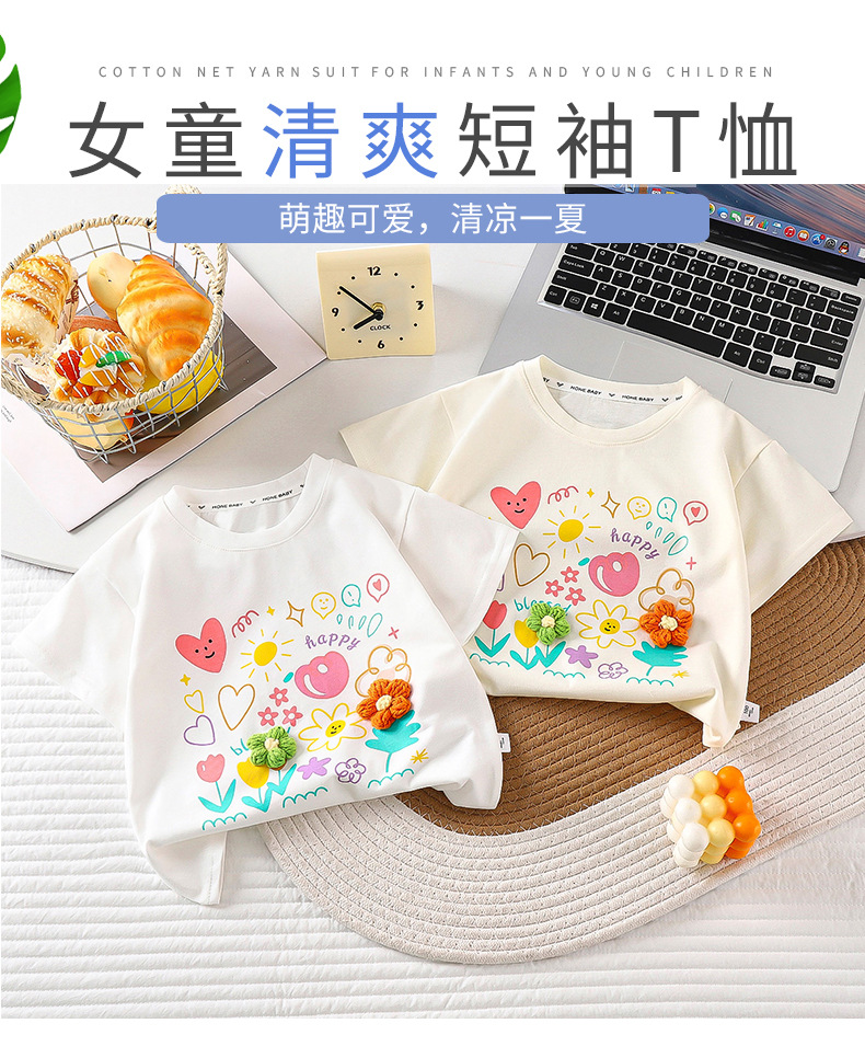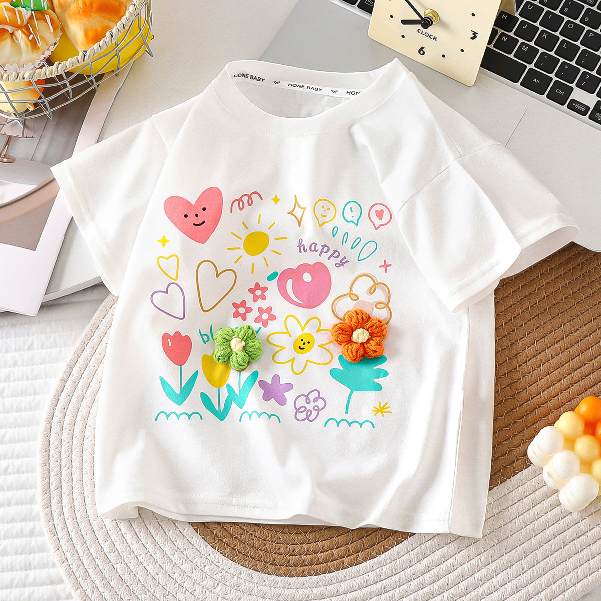 25년 여름 시원한 꽃무늬 라운드넥 반팔 여아 순면 티셔츠 아동 유아 다용도 상의 어린이용스토어 가기