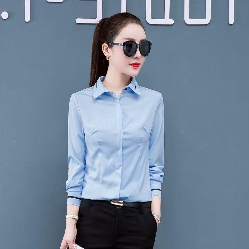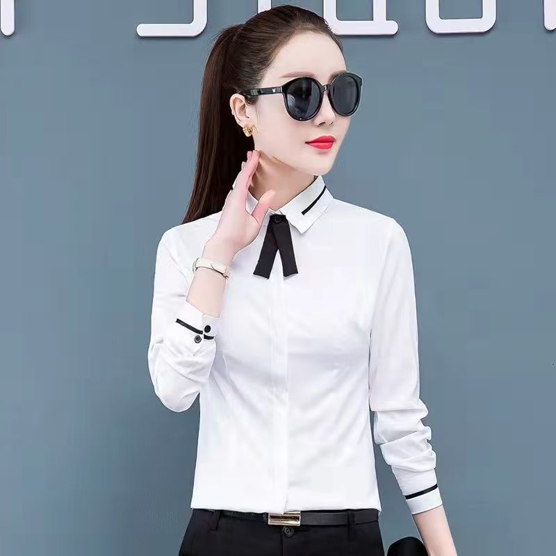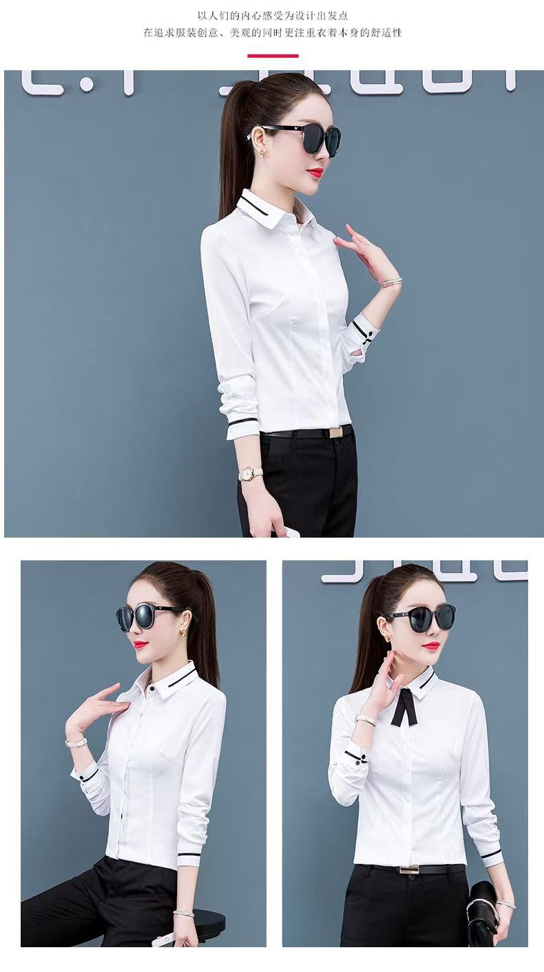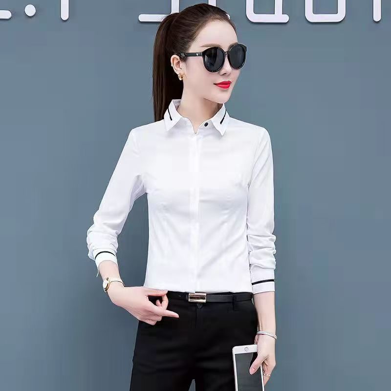 2024 년 새 화이트 셔츠 여성용 긴팔 슬림핏 슬림핏 비즈니스 의류 플러스 사이즈 오버홀 한국식 베이스 셔츠스토어 가기