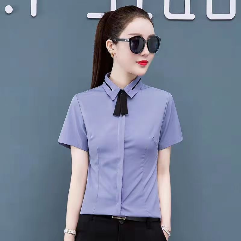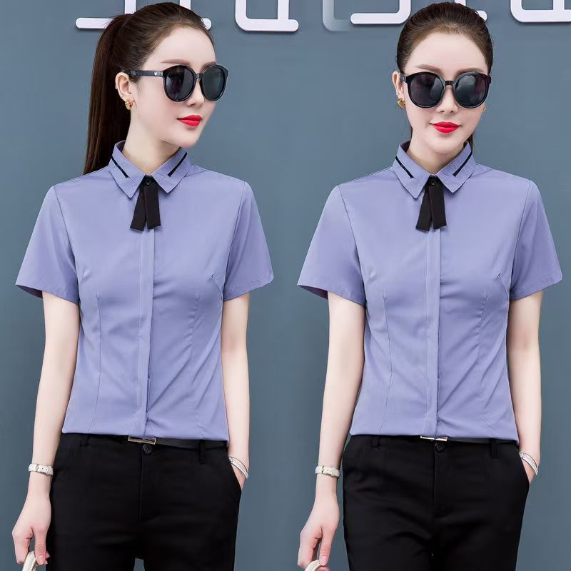 • 855 블루 반팔 [노출방지용 히든버튼]