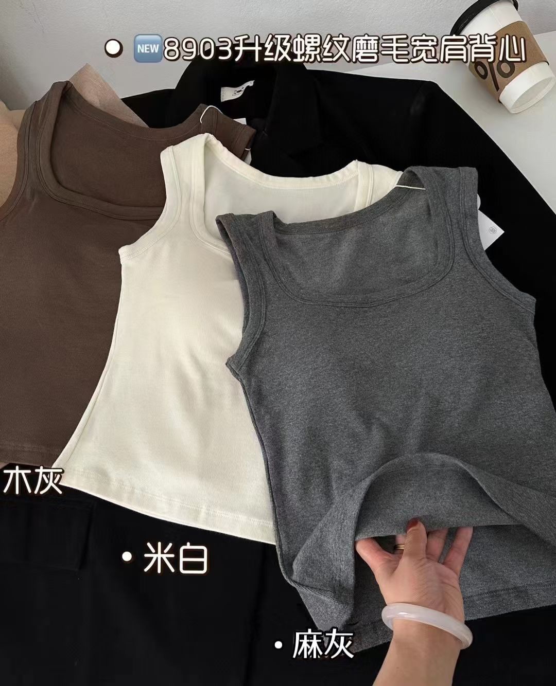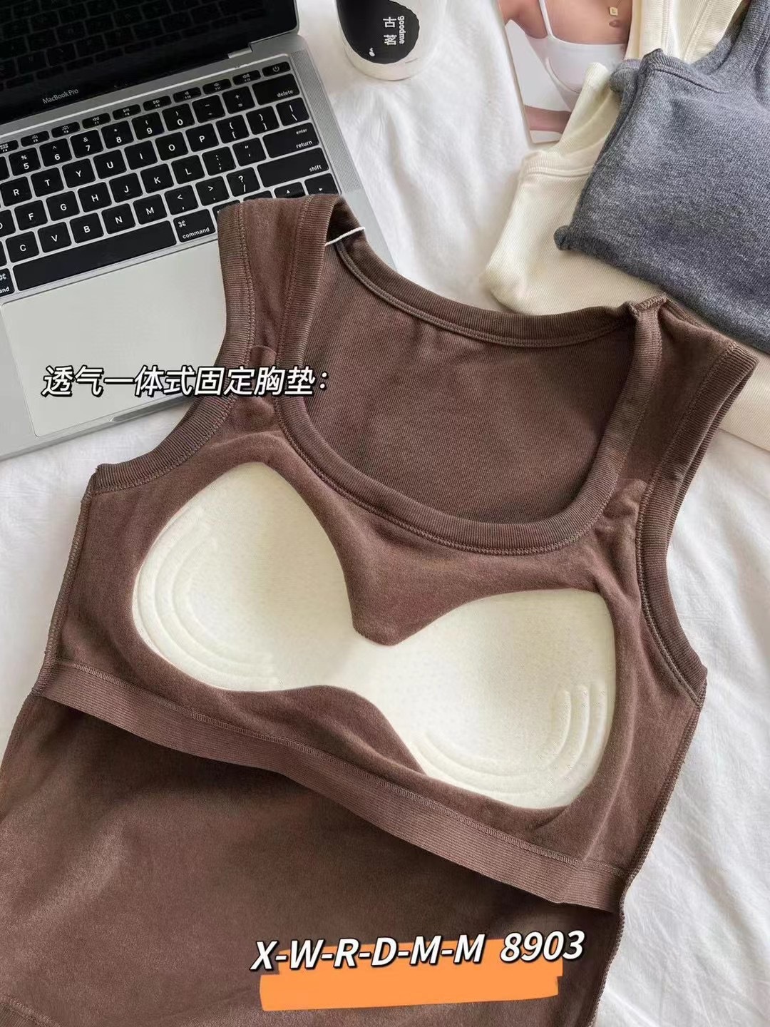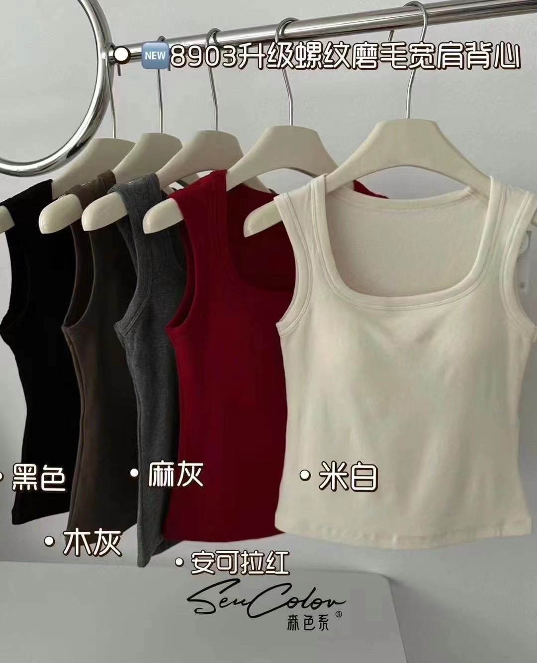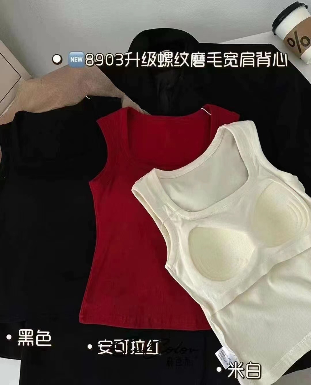 새로운 샌딩 따뜻한 스퀘어 칼라 조끼 기모 가슴 패드 솔리드 컬러 슬림 핏 슬림 핏 베이스 탑스토어 가기