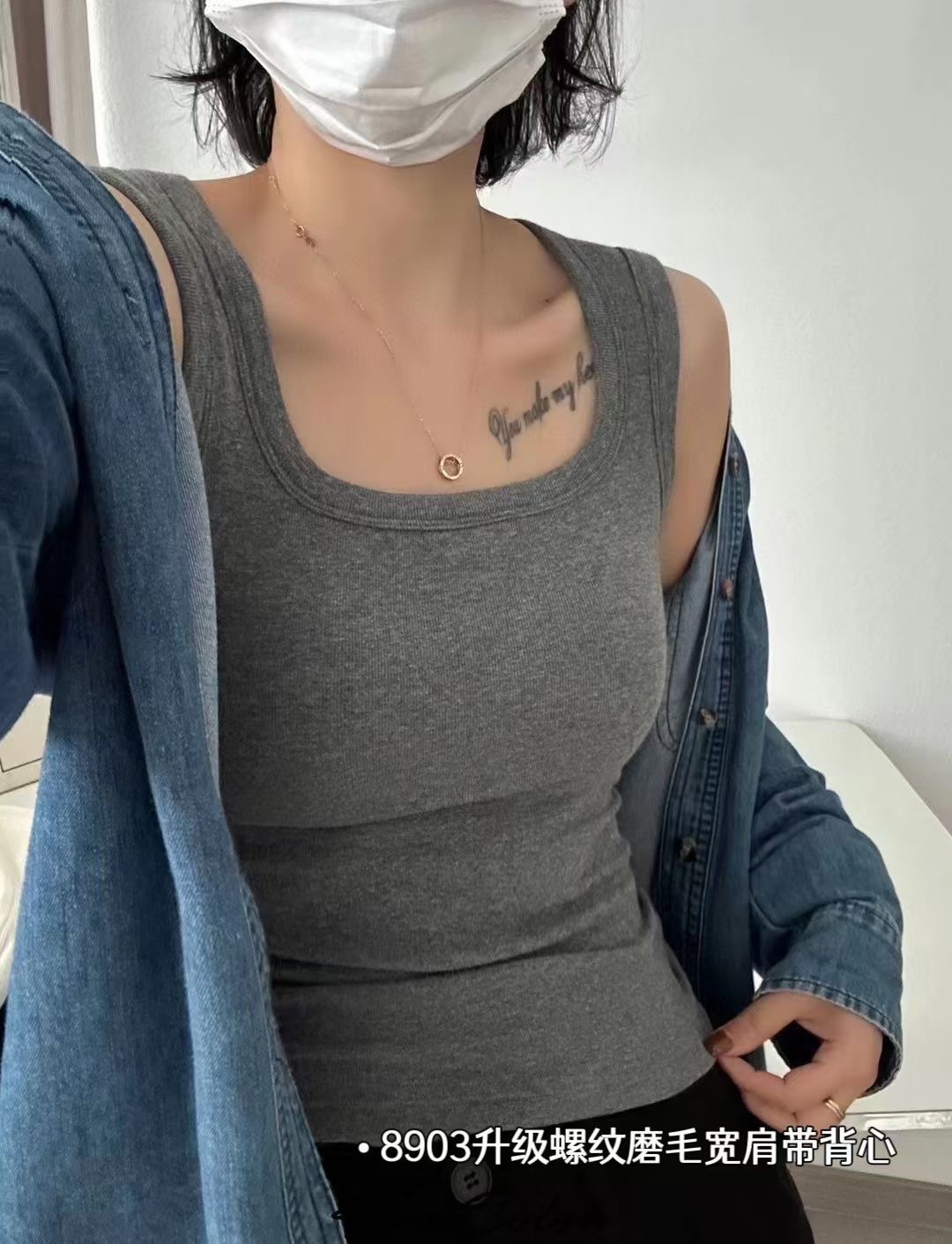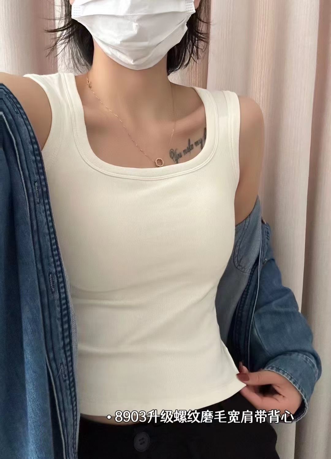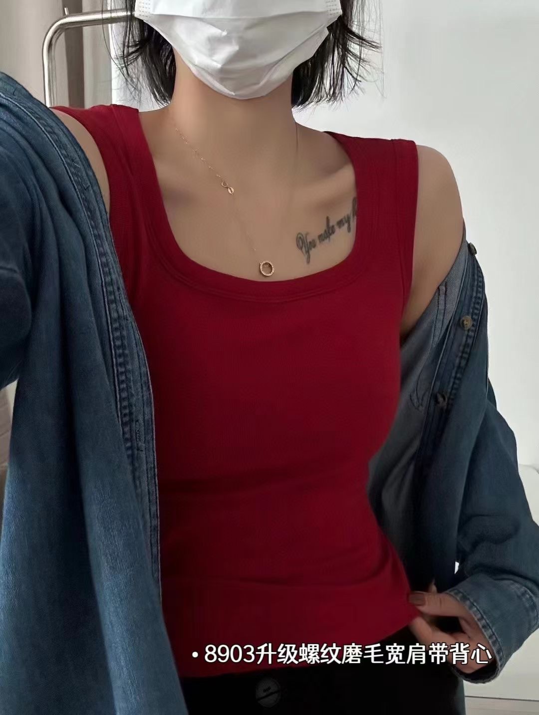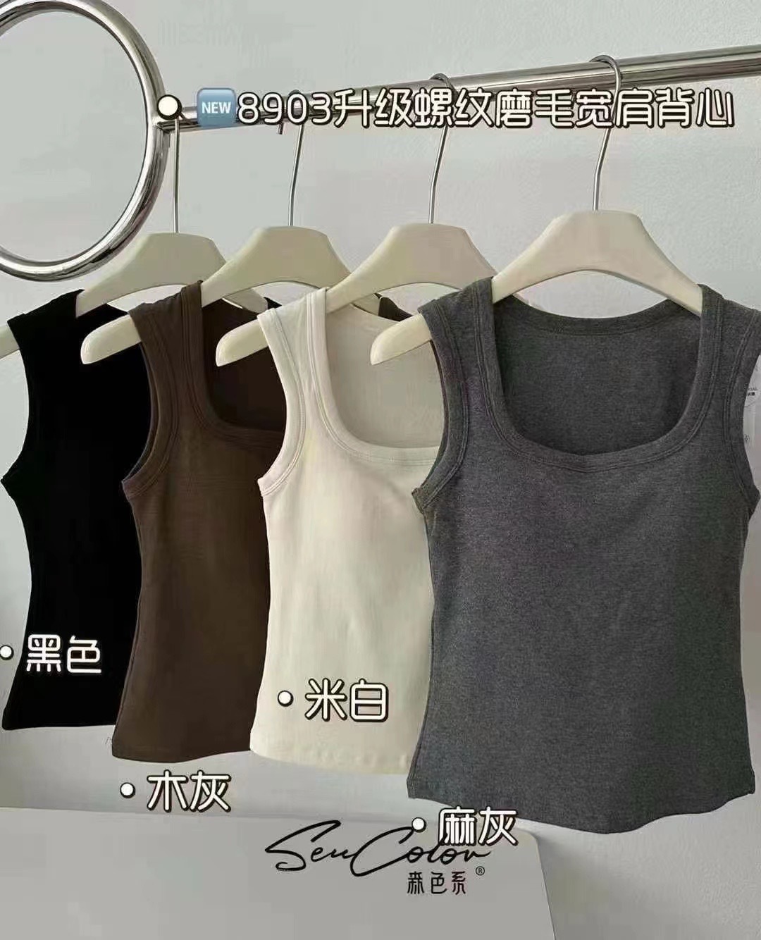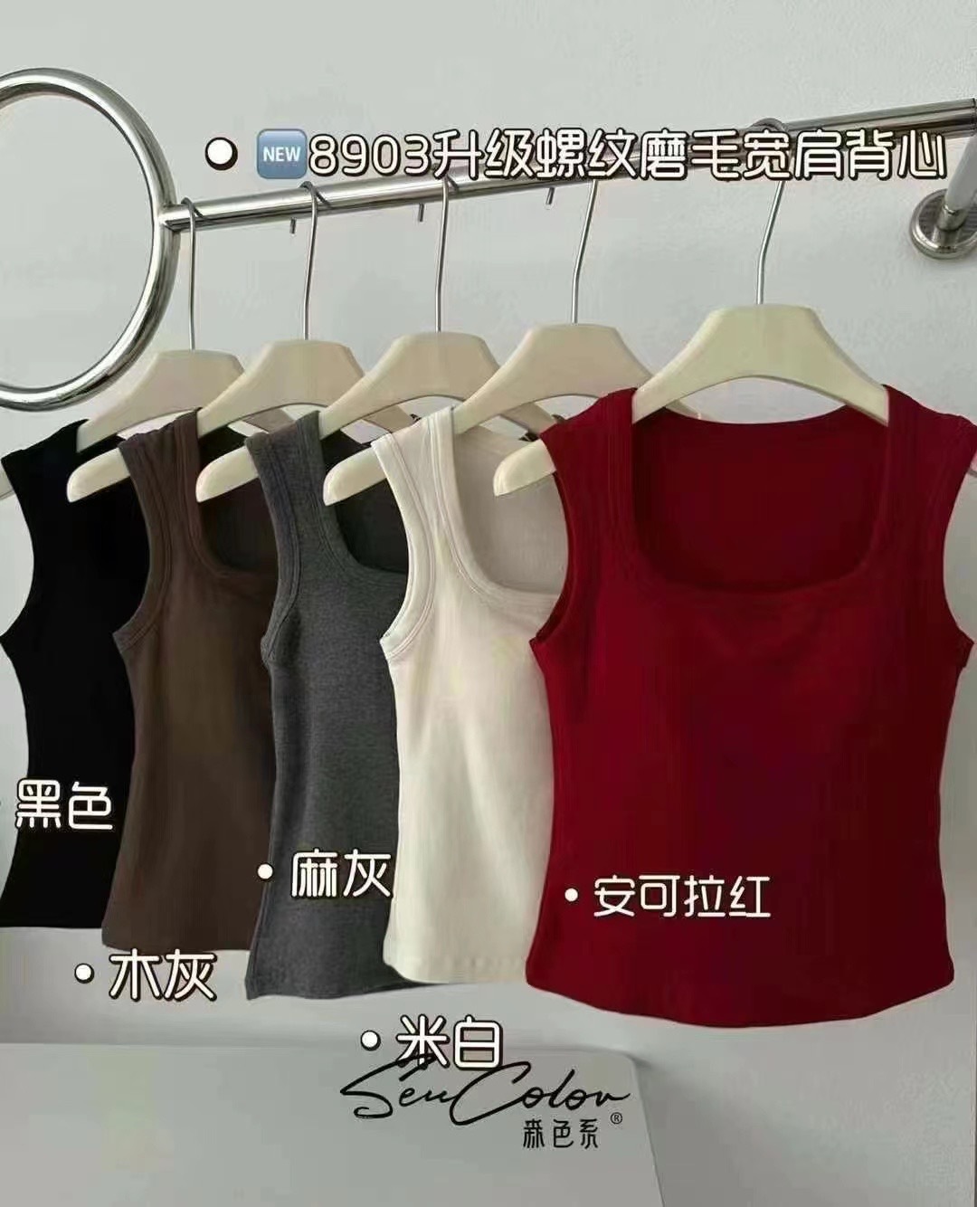 새로운 샌딩 따뜻한 스퀘어 칼라 조끼 기모 가슴 패드 솔리드 컬러 슬림 핏 슬림 핏 베이스 탑스토어 가기