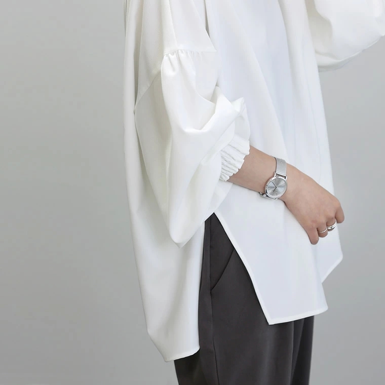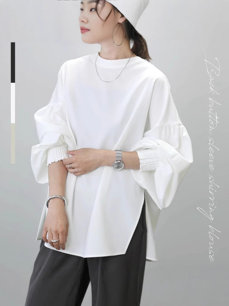 가을 2024 일본 틈새 디자인 라운드 목 플러스 사이즈 탑 긴 소매 분할 셔츠 여성스토어 가기