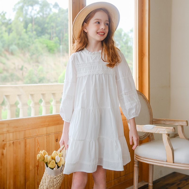 여아 드레스 봄 여름 레이스 공주 드레스 중대형 아동 한국식 긴팔 흰색 롱 드레스 크로스보더 아동복스토어 가기
