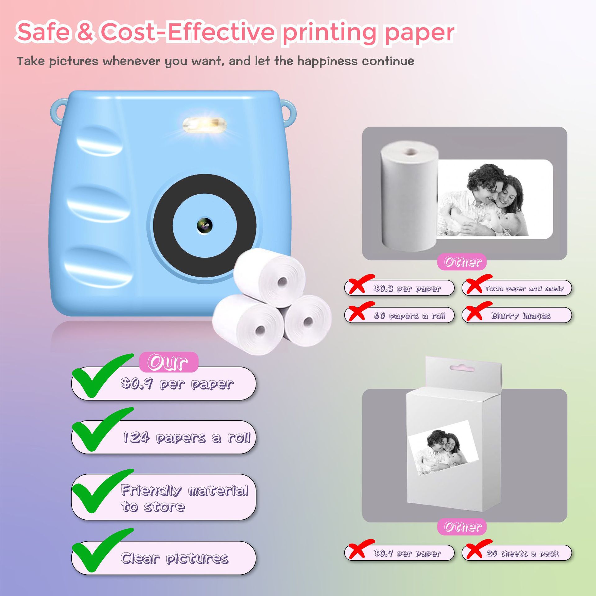 제조사 직송 즉석사진 어린이용 카메라, 사진 촬영 및 자동 인쇄 기능이 있는 미니 사진 프린터, 게임 도매스토어 가기