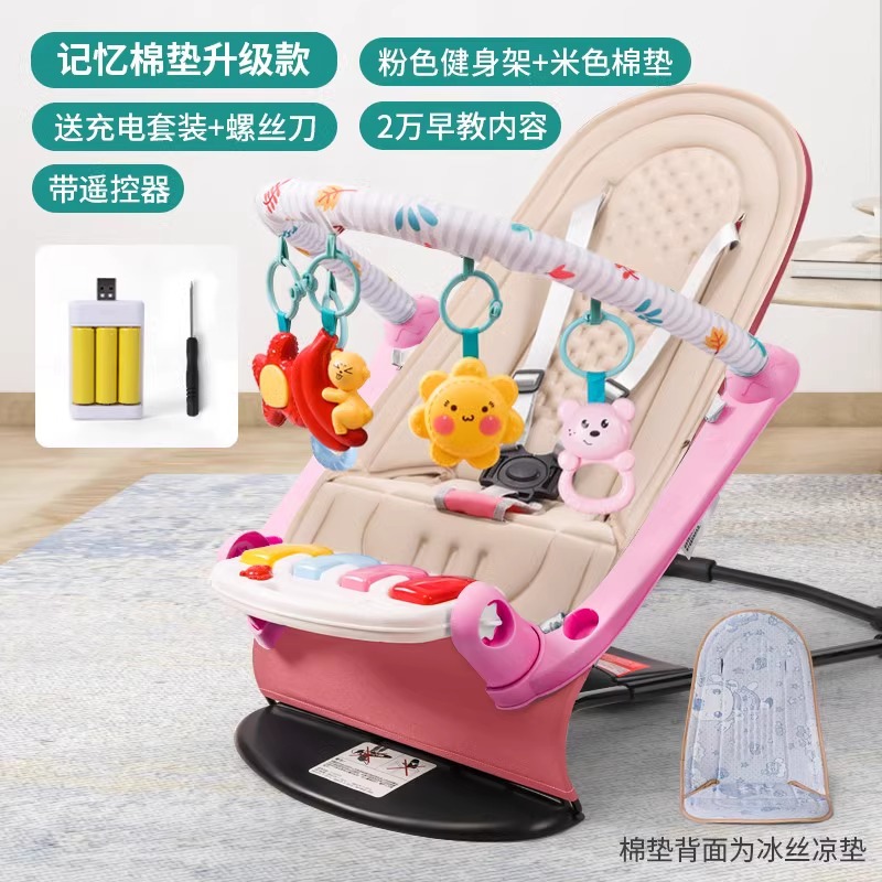 • 리모컨이 포함된 새로운 흔들의자 베이지색 수면 패드 충전식 버전