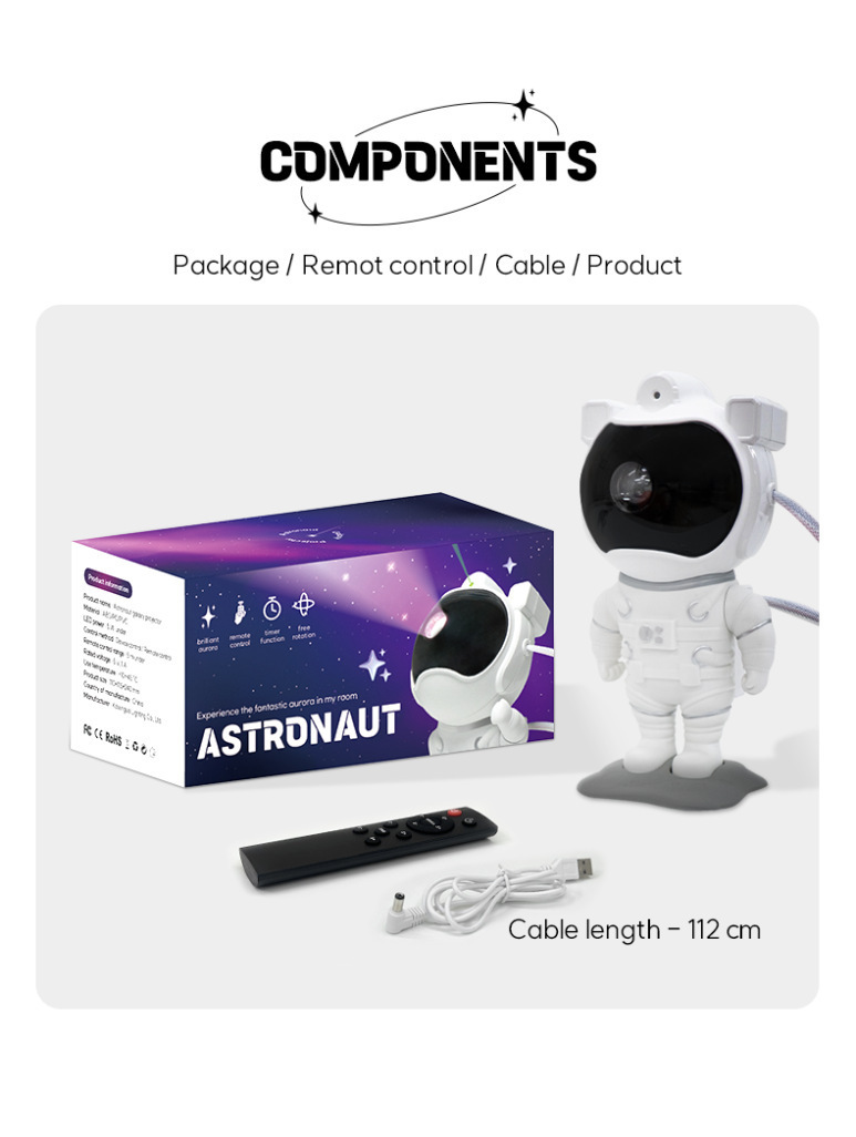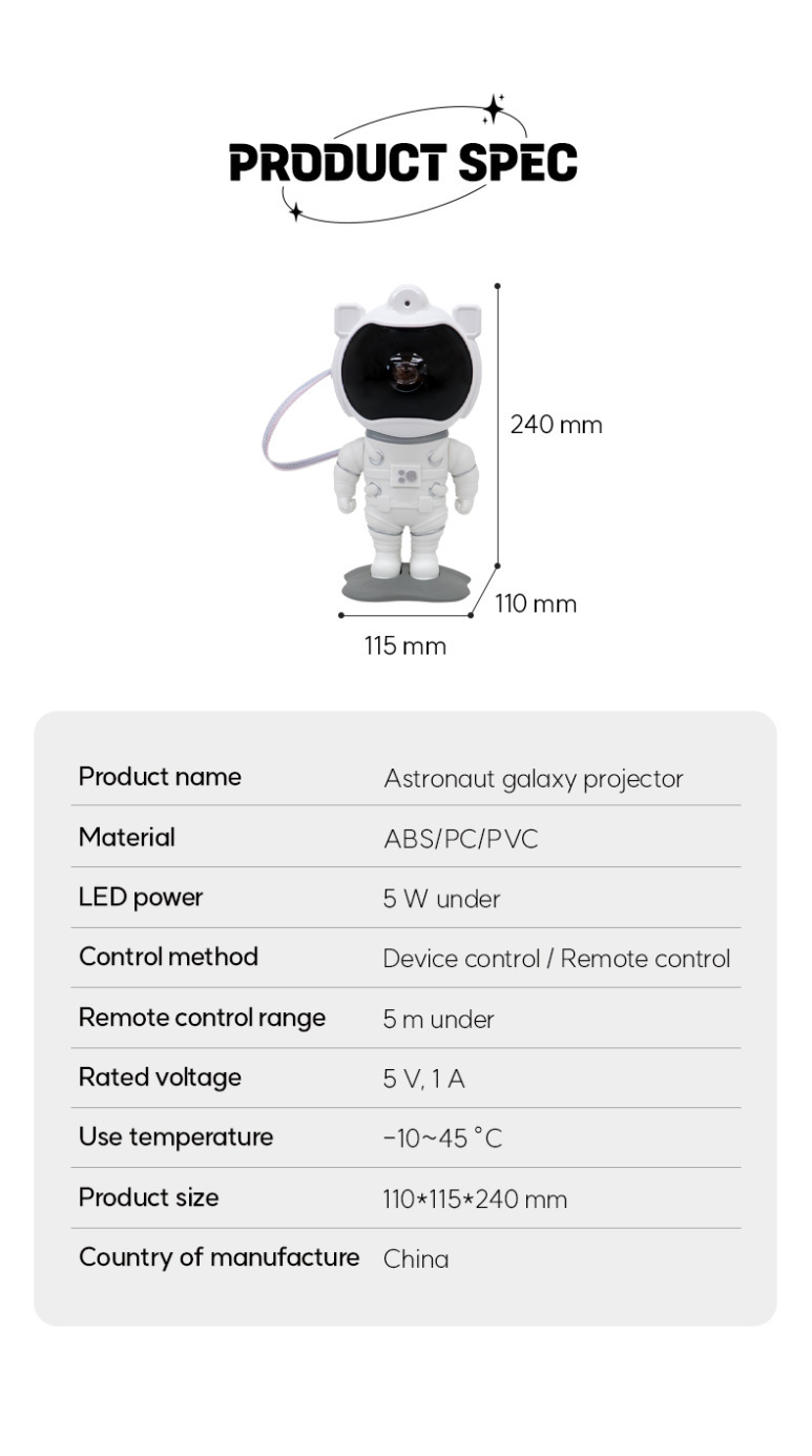 국경을 넘는 새로운 우주 비행사 별이 빛나는 하늘 프로젝션 램프 USB 별이 빛나는 하늘 분위기 램프 우주 비행사 장식품 별이 빛나는 하늘 램프 선물