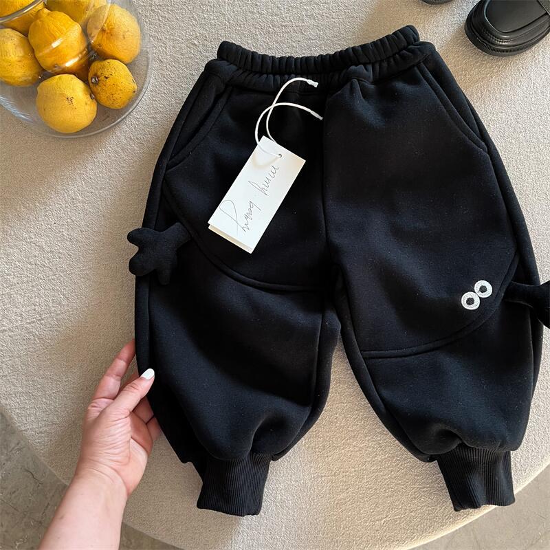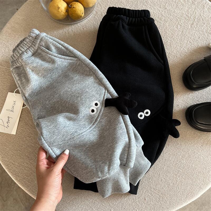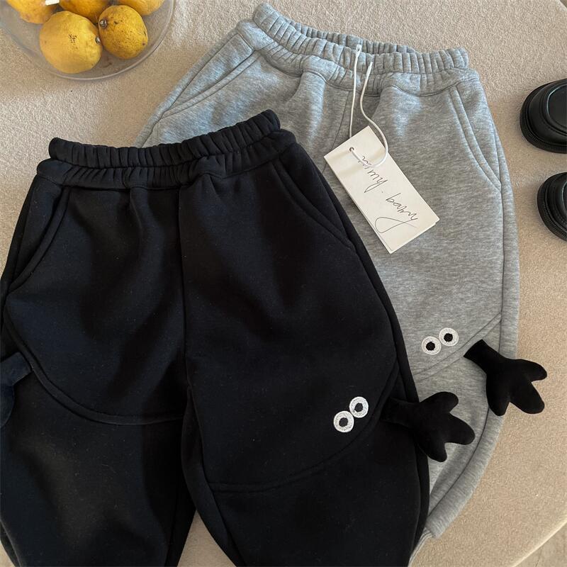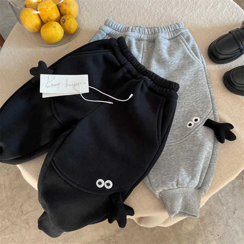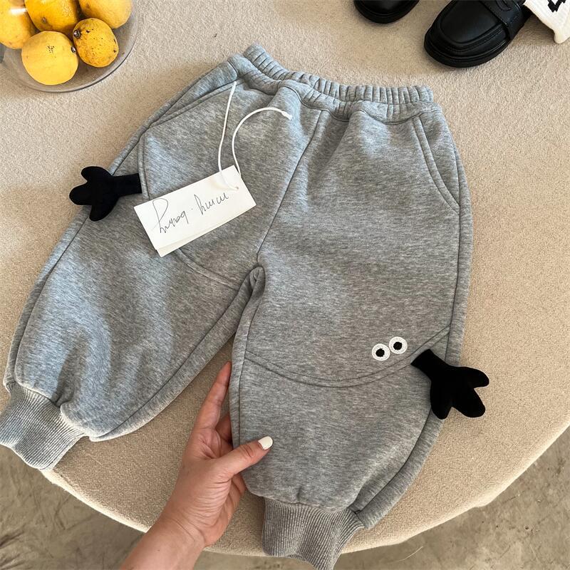 아동용 만화 캐릭터 스웨트팬츠, 기모 안감, 남아용 2025 겨울 모델, 유아용 레깅스, 아빠 바지 스타일, 트렌디한 여아용 캐주얼 팬츠, 두꺼운 소재스토어 가기