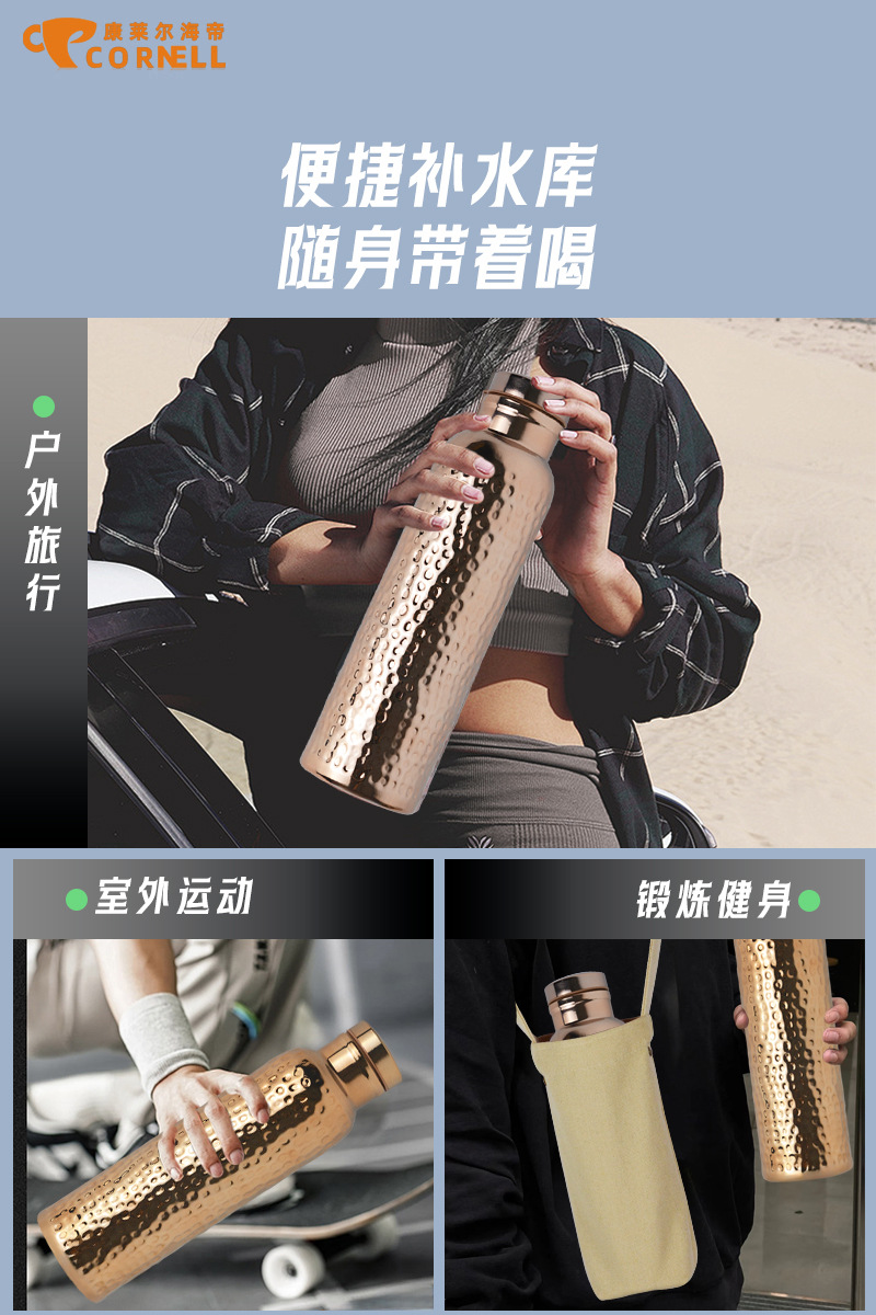 跨境批发620ml双层不锈钢真空运动水壶锤点保温杯户外小口水瓶