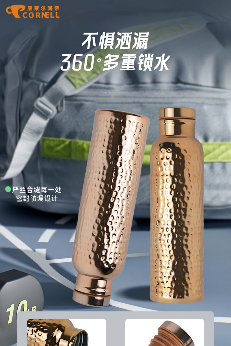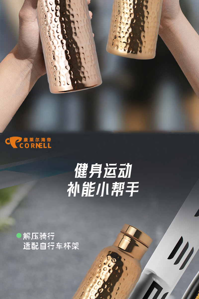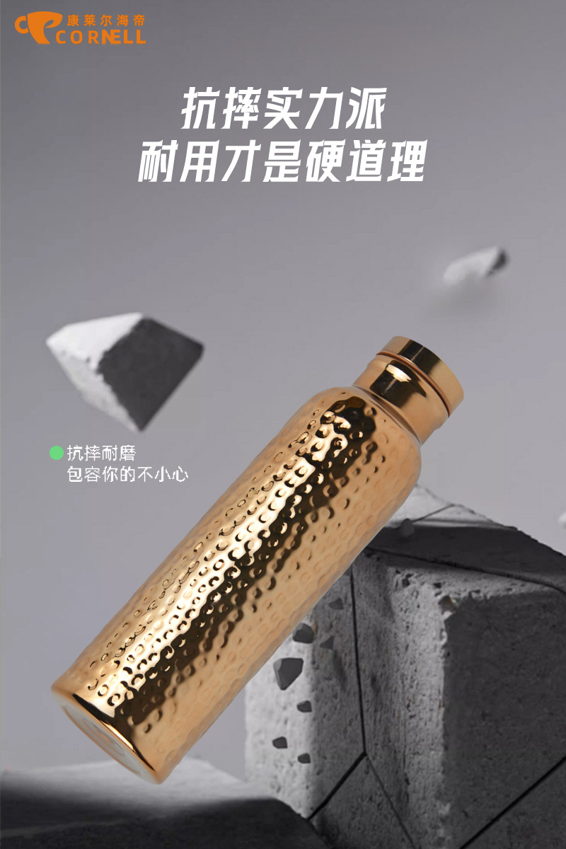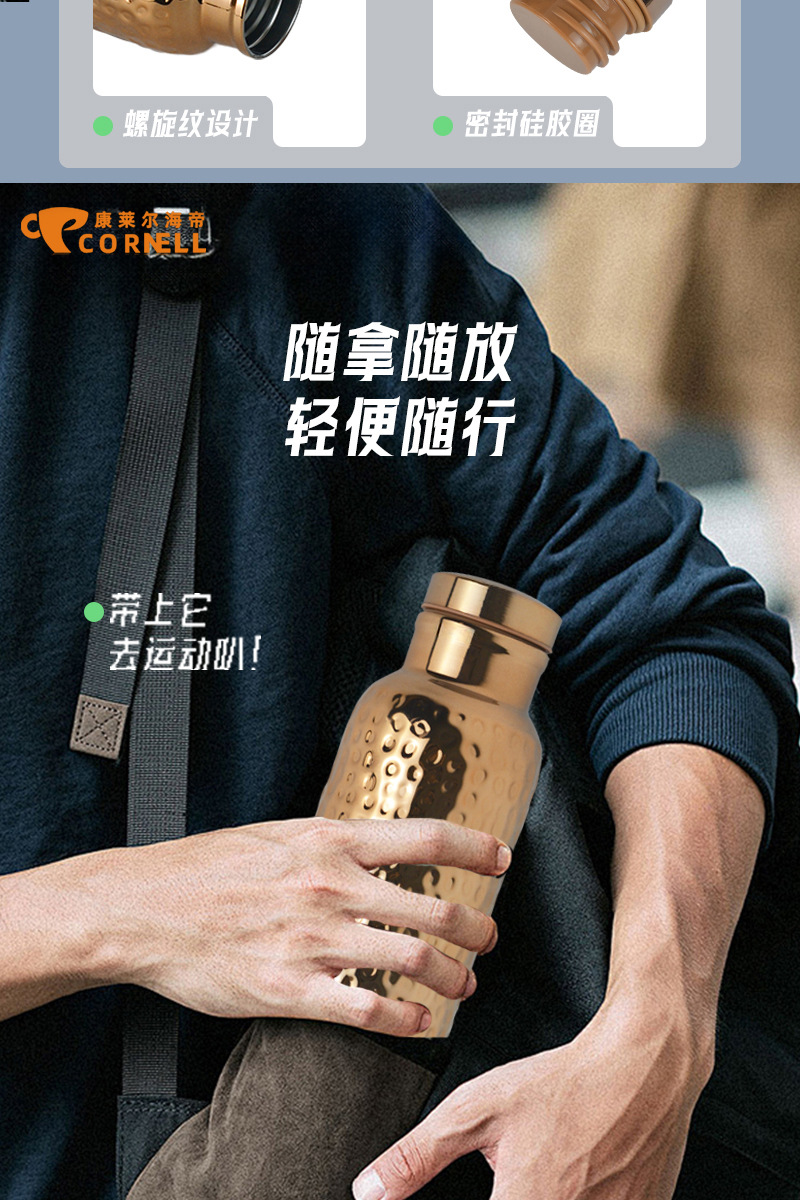新款620ml双层不锈钢真空保温保冷电镀金色水杯 便携防漏户外运动