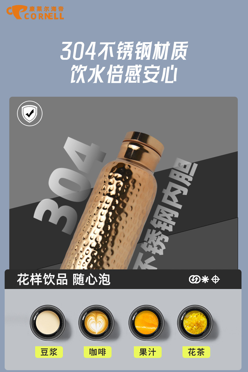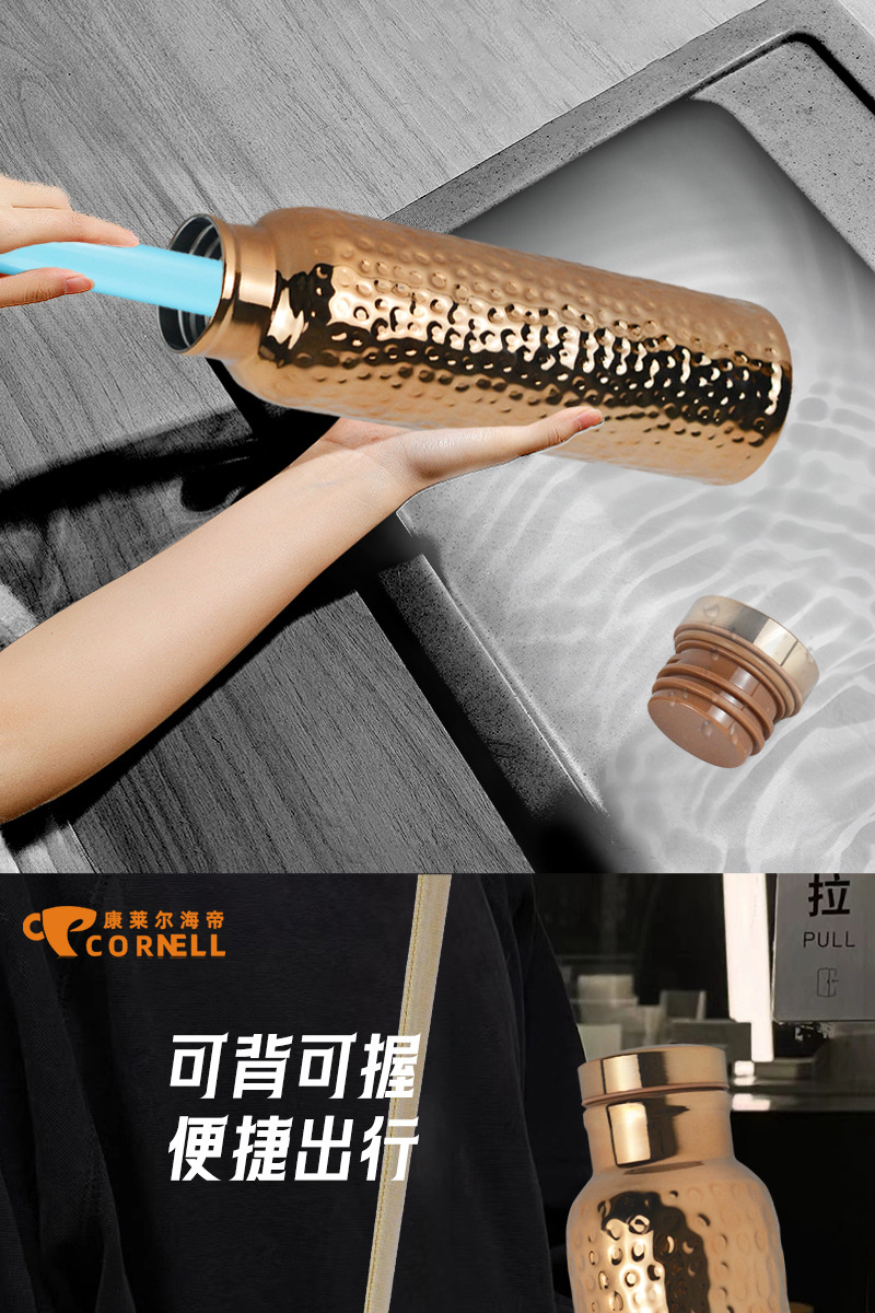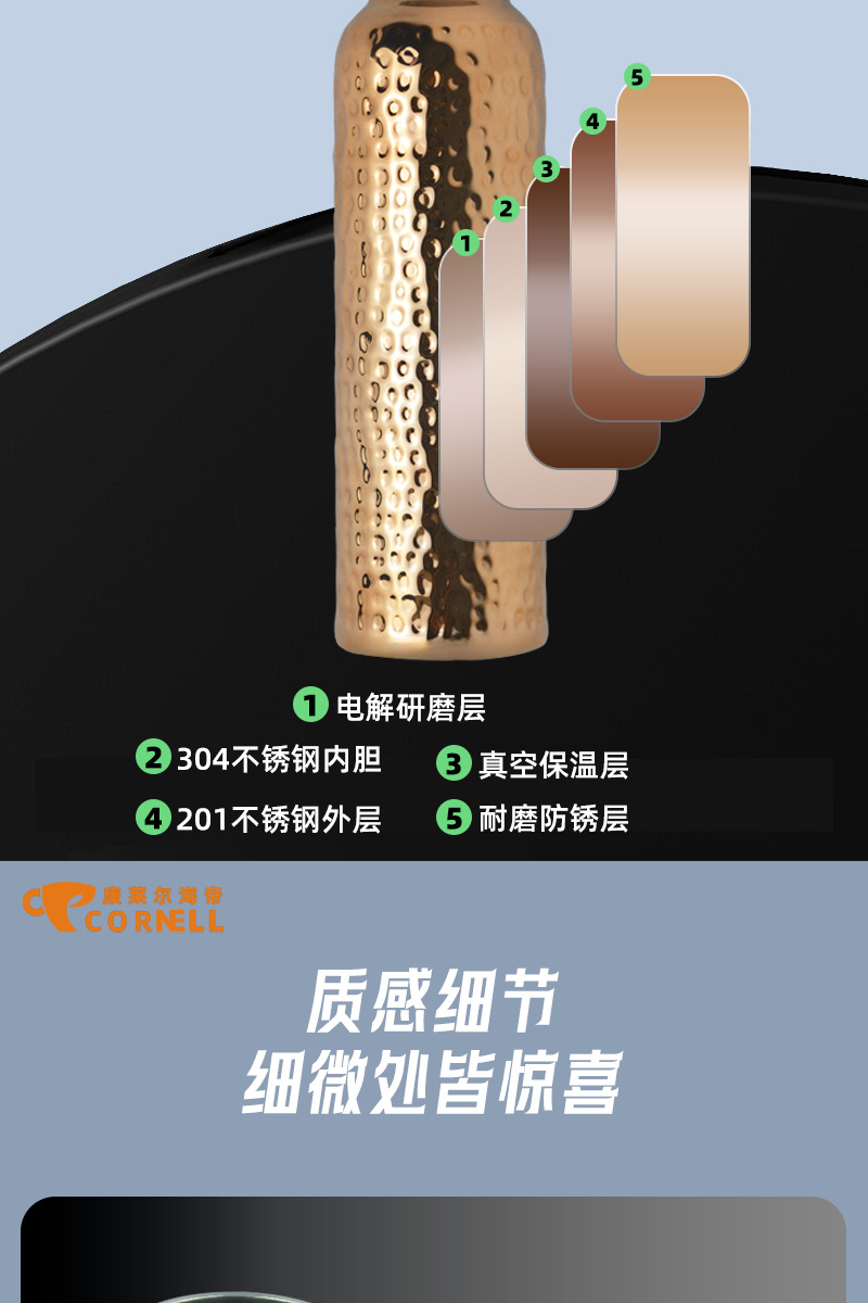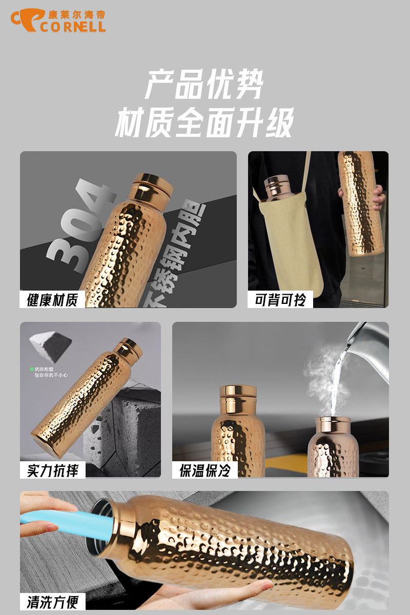 新款620ml双层不锈钢真空保温保冷电镀金色水杯 便携防漏户外运动