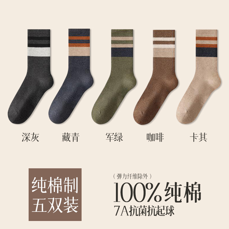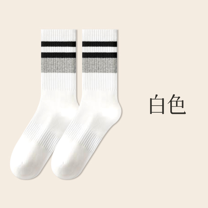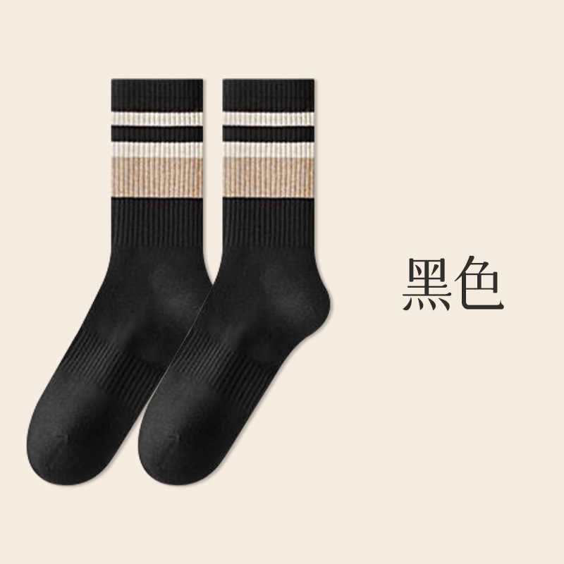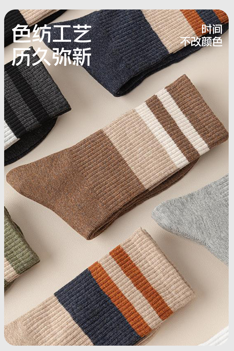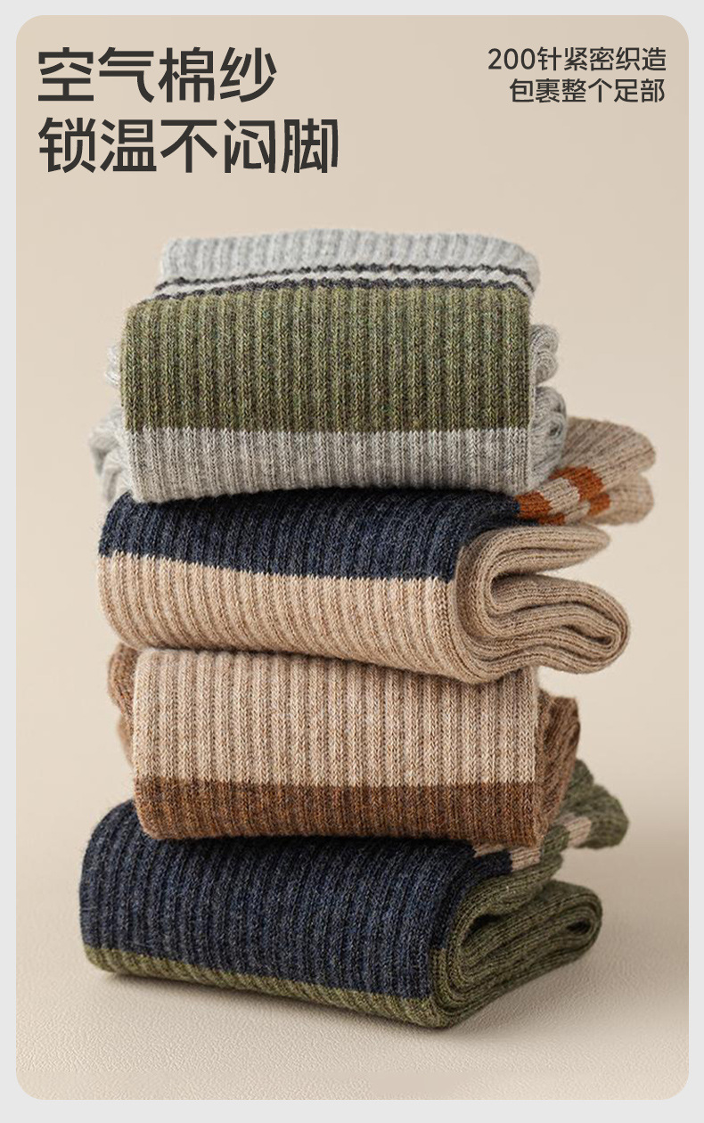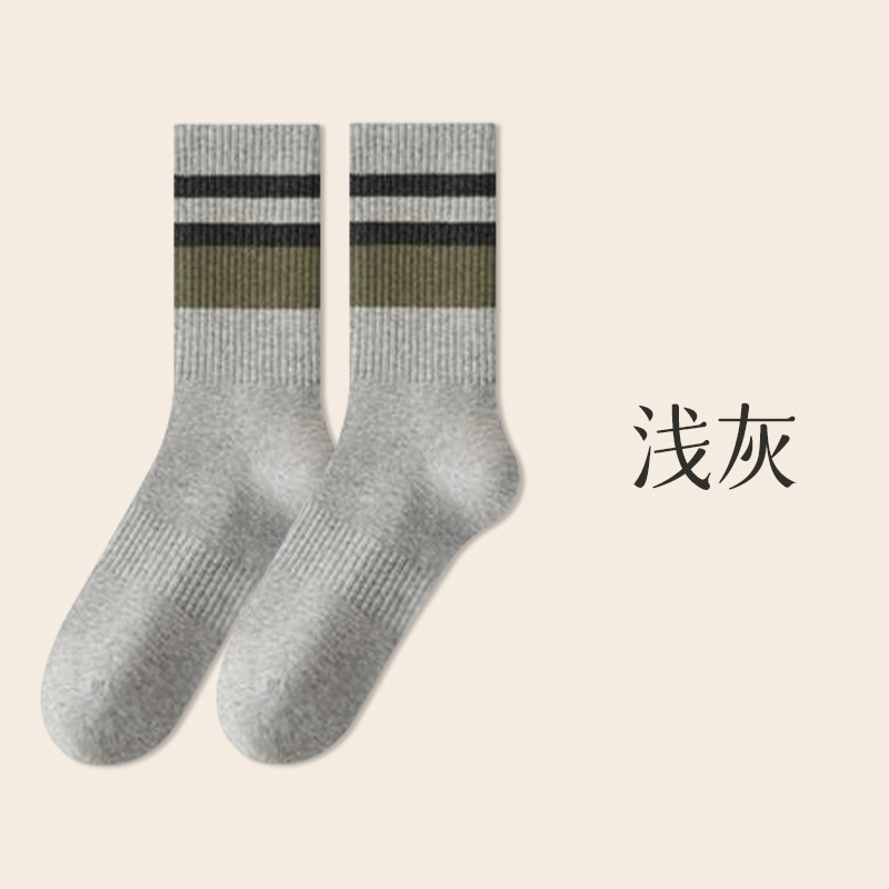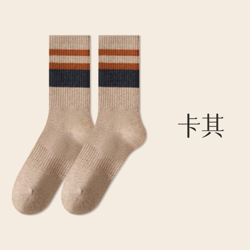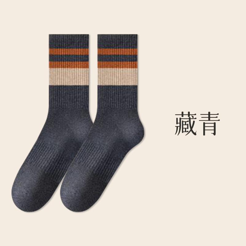 가을 겨울 줄무늬 양말 남성용 방취 미끄럼 방지 보온 항균 중목 양말 두꺼운 스포츠 남성용 순면 롱 양말