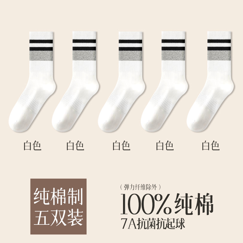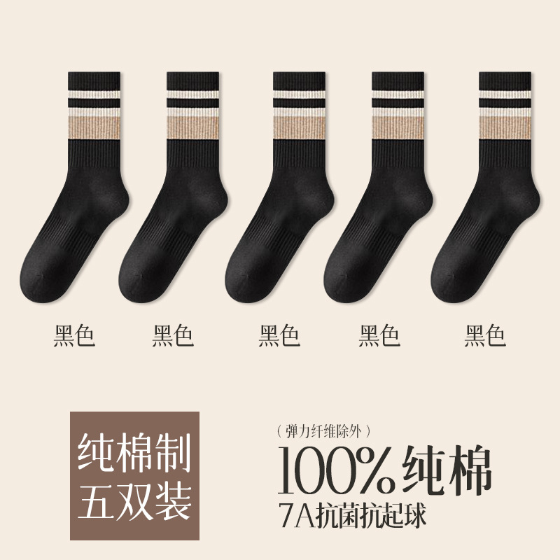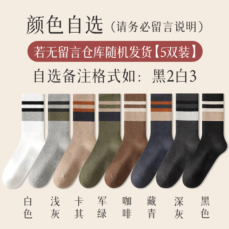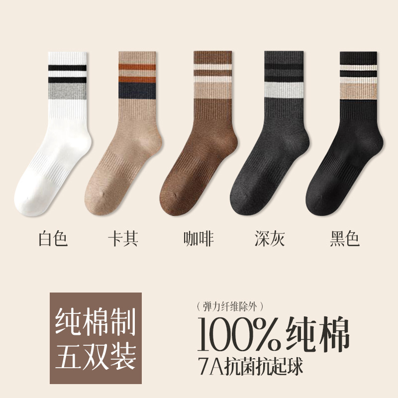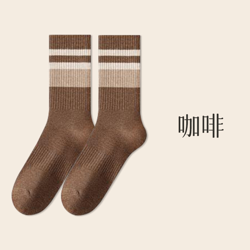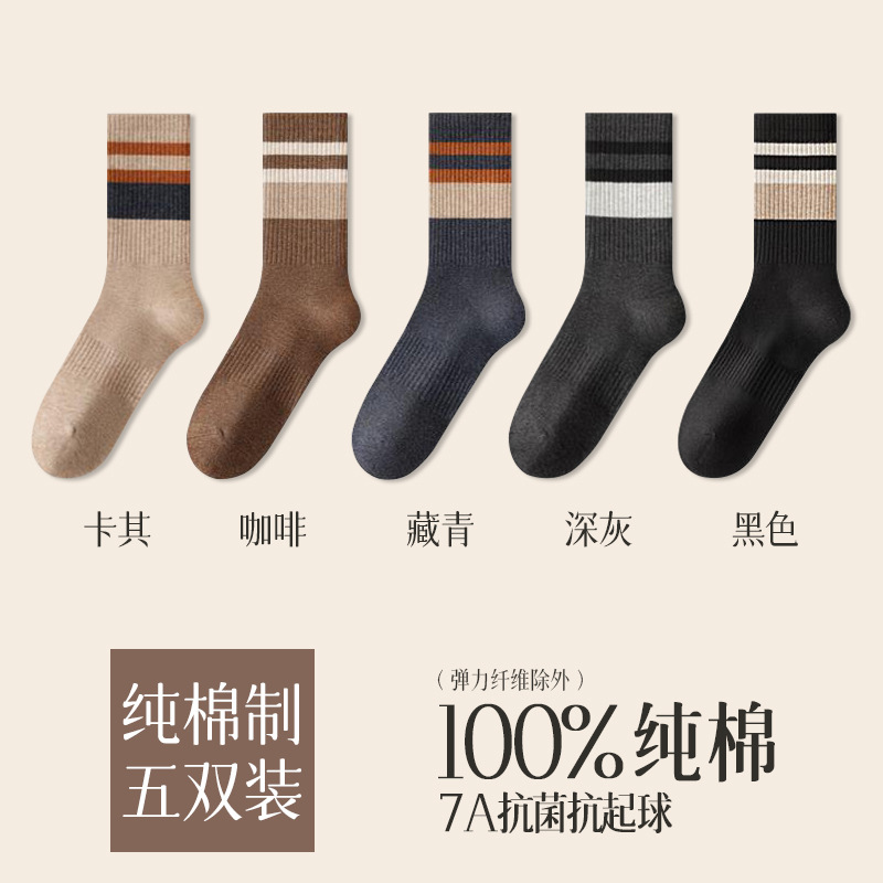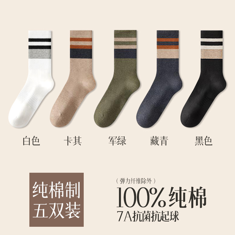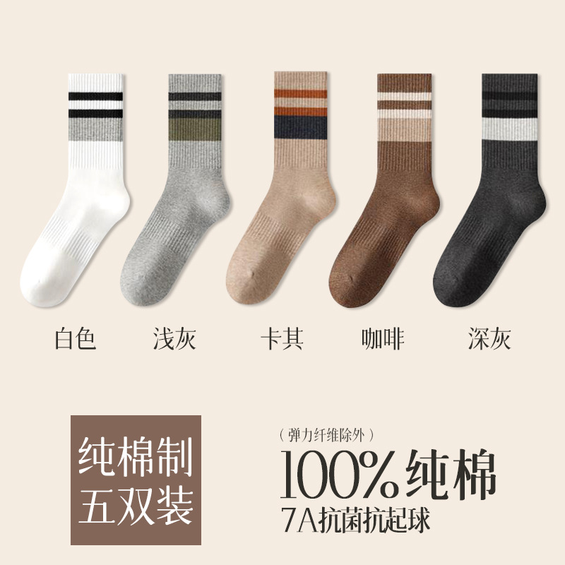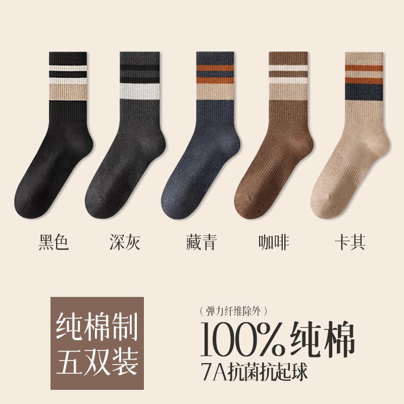 가을 겨울 줄무늬 양말 남성용 방취 미끄럼 방지 보온 항균 중목 양말 두꺼운 스포츠 남성용 순면 롱 양말