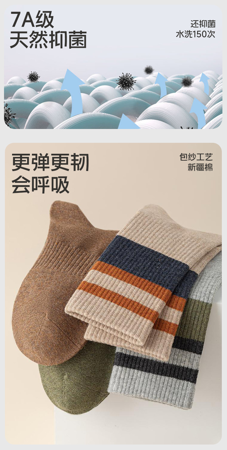 가을 겨울 줄무늬 양말 남성용 방취 미끄럼 방지 보온 항균 중목 양말 두꺼운 스포츠 남성용 순면 롱 양말스토어 가기