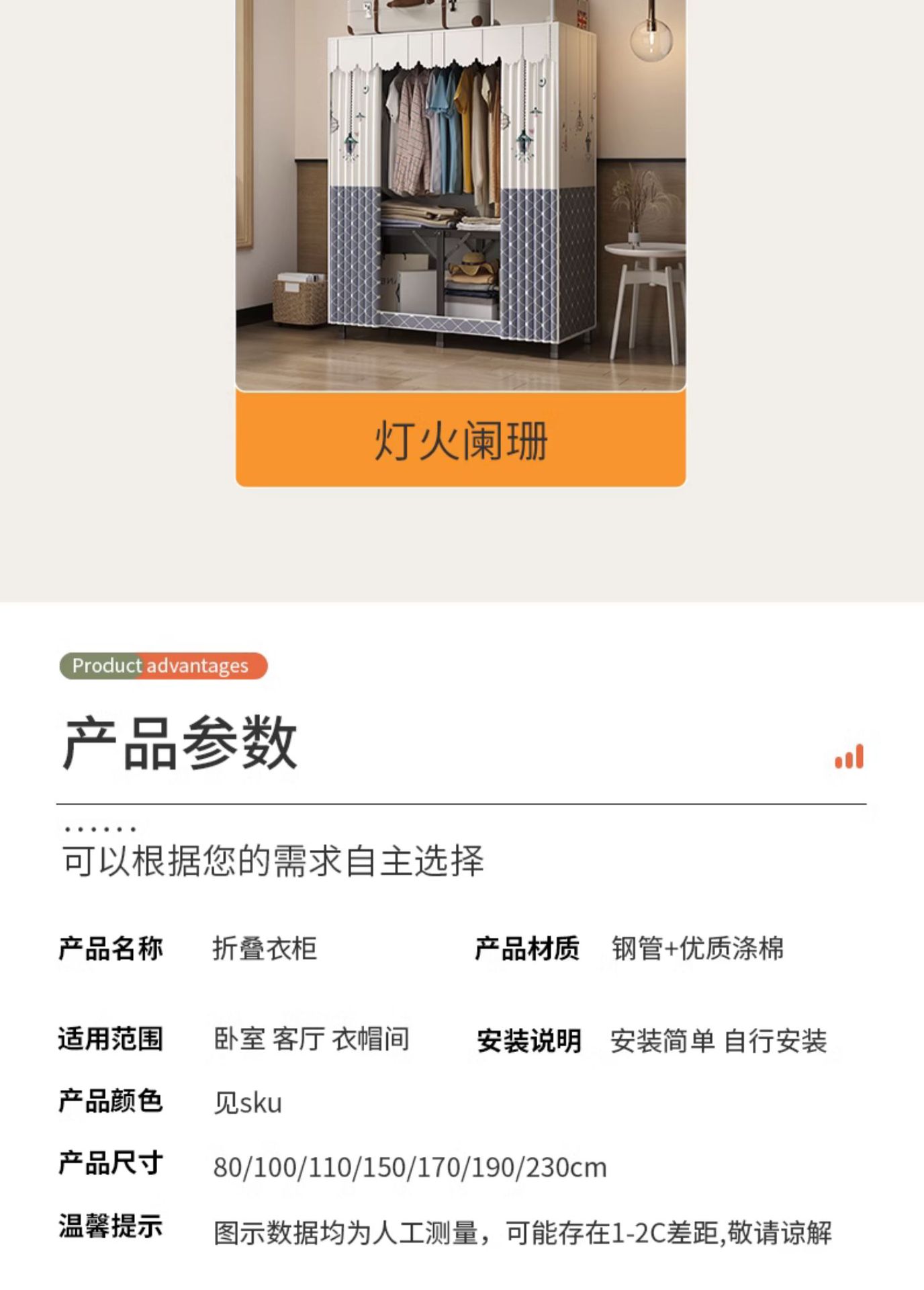 접이식 간단한 옷장 홈 침실 설치-무료 천 옷장 작은 아파트 전체 강철 프레임 임대 내구성스토어 가기