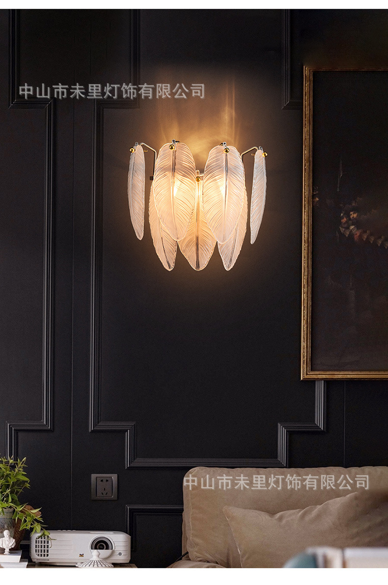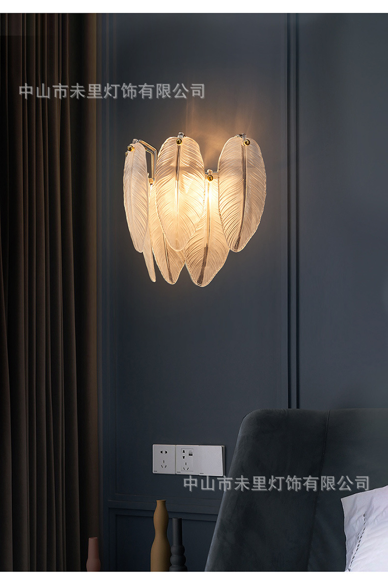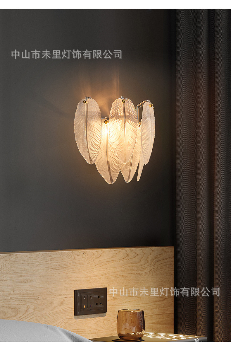 프랑스 스타일 가벼운 럭셔리 포스트 모던 간단한 거실 침실 방 다이닝 룸 램프 창조적 인 깃털 유리 램프 벽 램프
