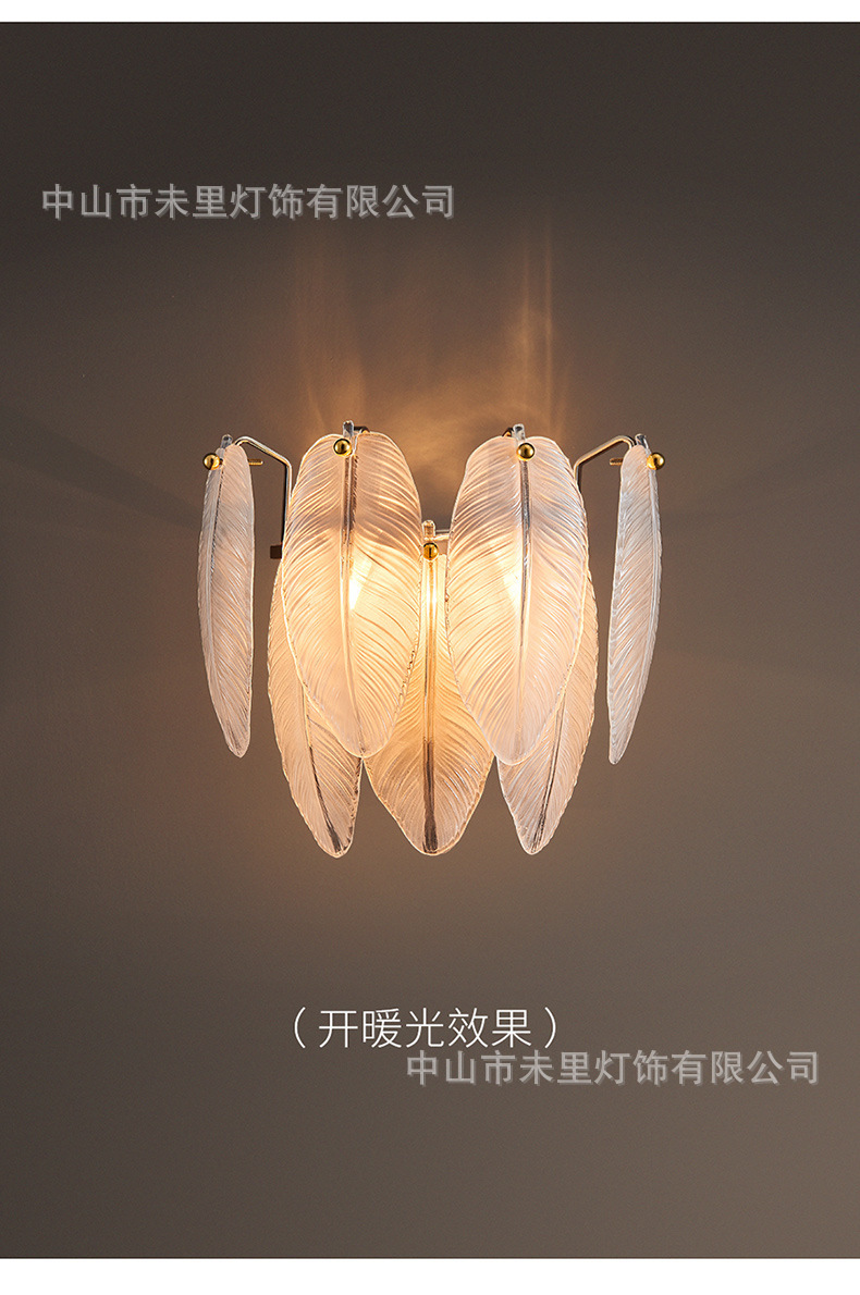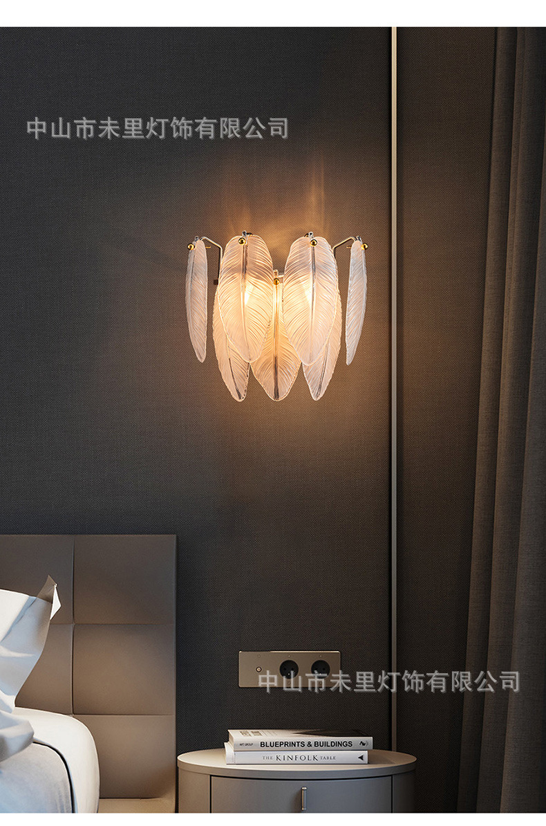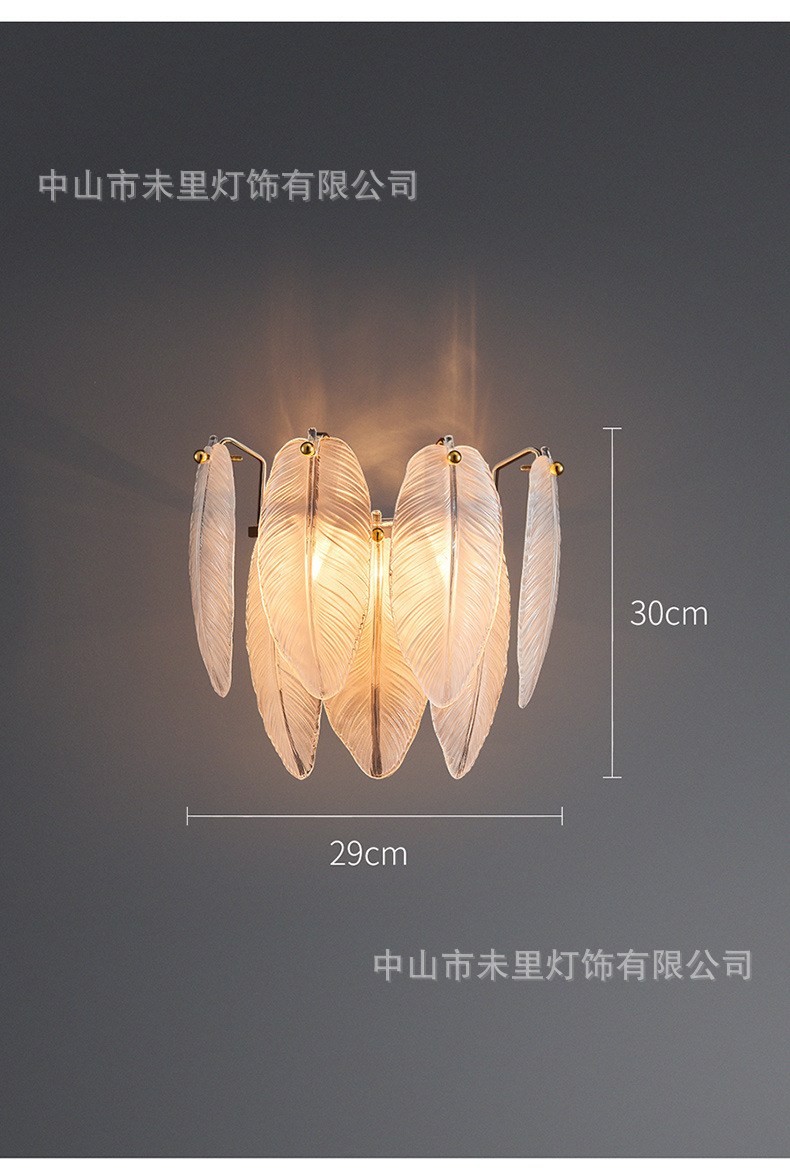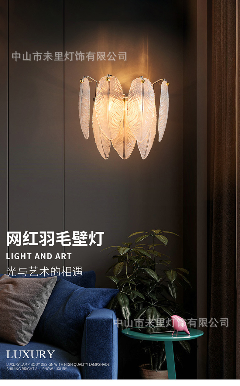 프랑스 스타일 가벼운 럭셔리 포스트 모던 간단한 거실 침실 방 다이닝 룸 램프 창조적 인 깃털 유리 램프 벽 램프