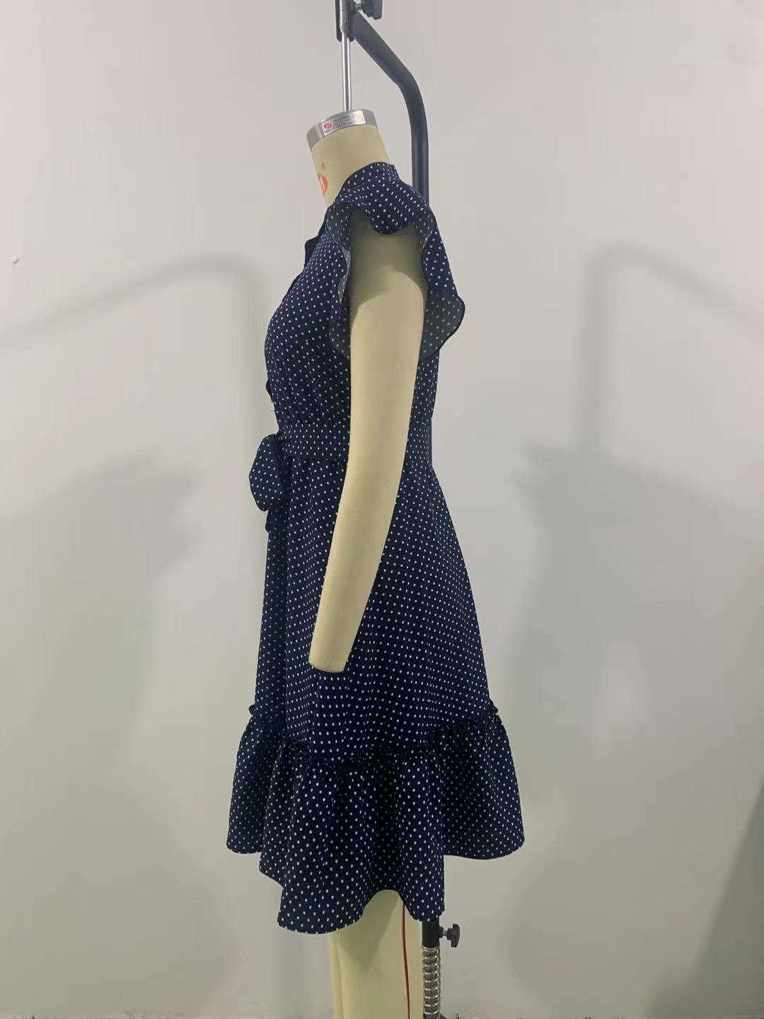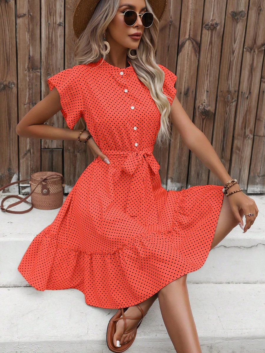 Ruiou 크로스보더 리조트 스타일 드레스 2025 여름 유럽과 미국 스타일의 연잎 반팔 레이스업 A라인 스커트 여성용스토어 가기