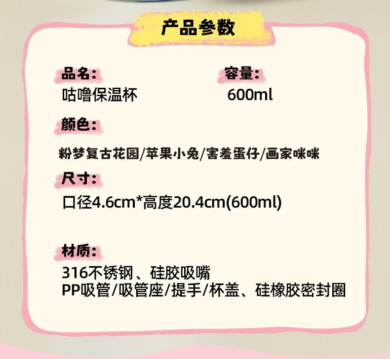316 스테인레스 스틸 어린이 보온병 컵 대용량 소녀 높은 색상 가치 학생 피펫 컵 만화 운반 컵 컵 컵