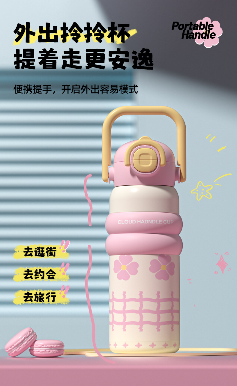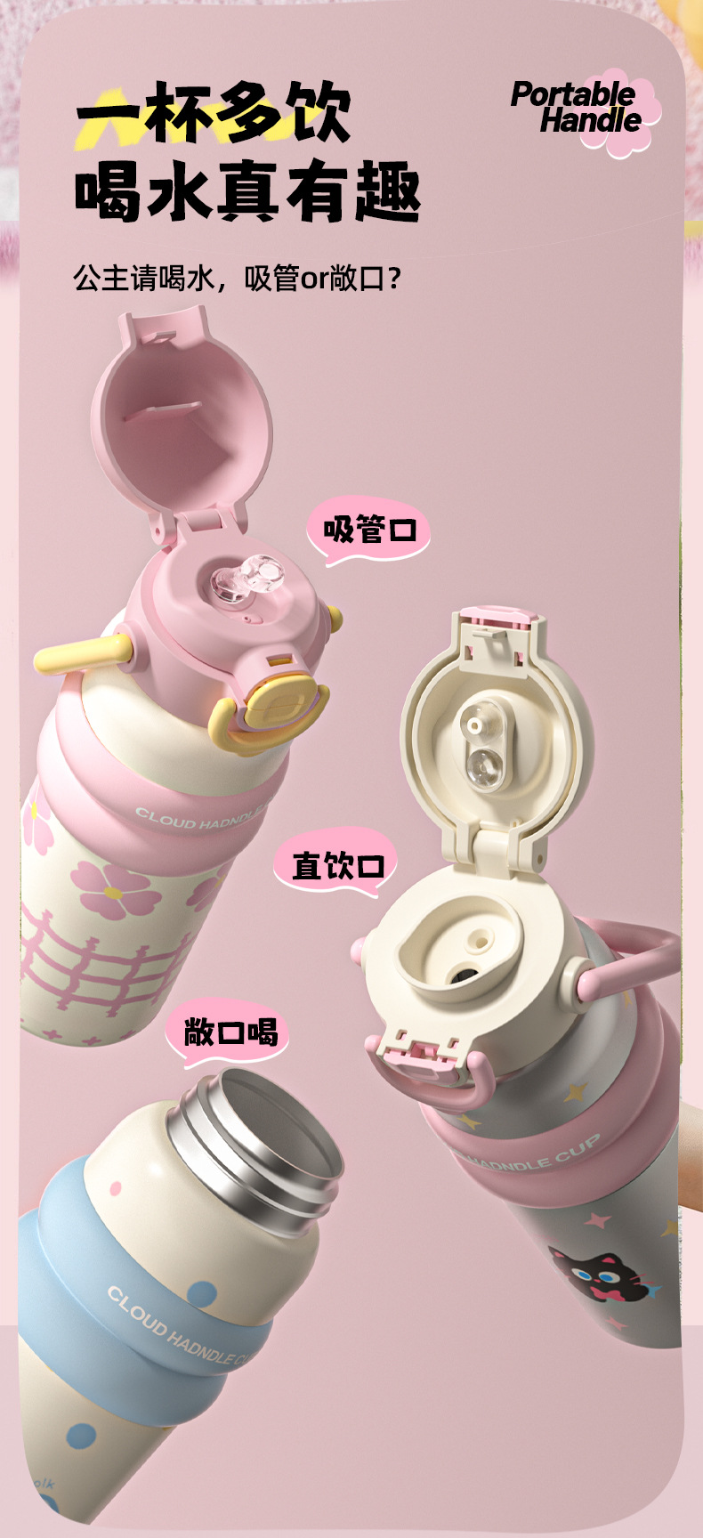 316 스테인레스 스틸 어린이 보온병 컵 대용량 소녀 높은 색상 가치 학생 피펫 컵 만화 운반 컵 컵 컵스토어 가기