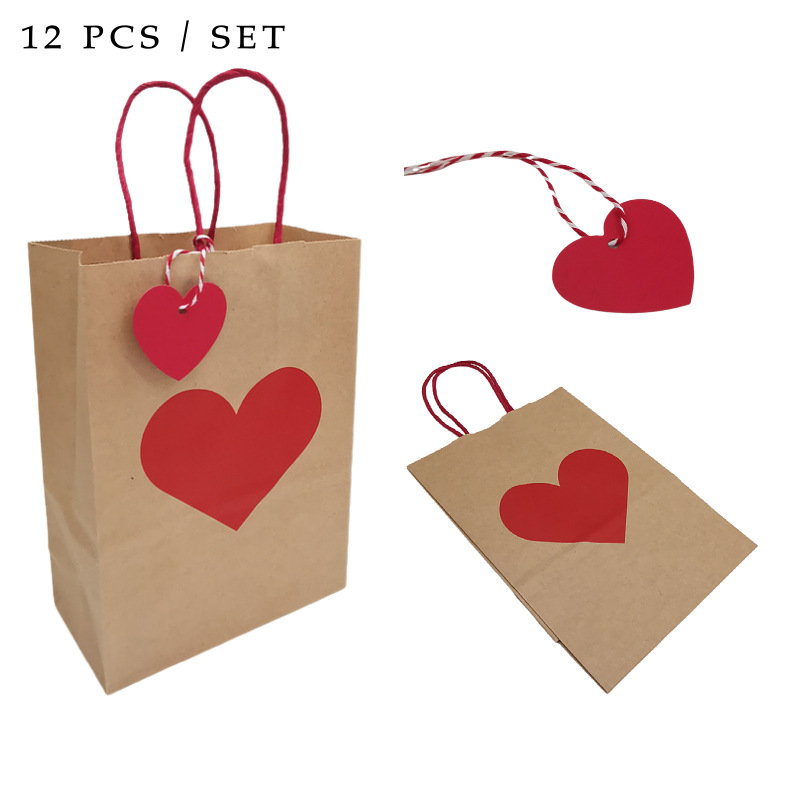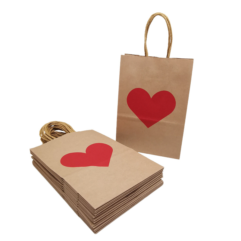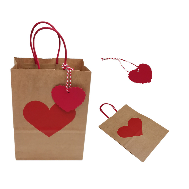빨간 사랑 선물 가방 발렌타인 데이 선물 포장 가방 크래프트 종이 가방 손 가방 리본 쇼핑백스토어 가기