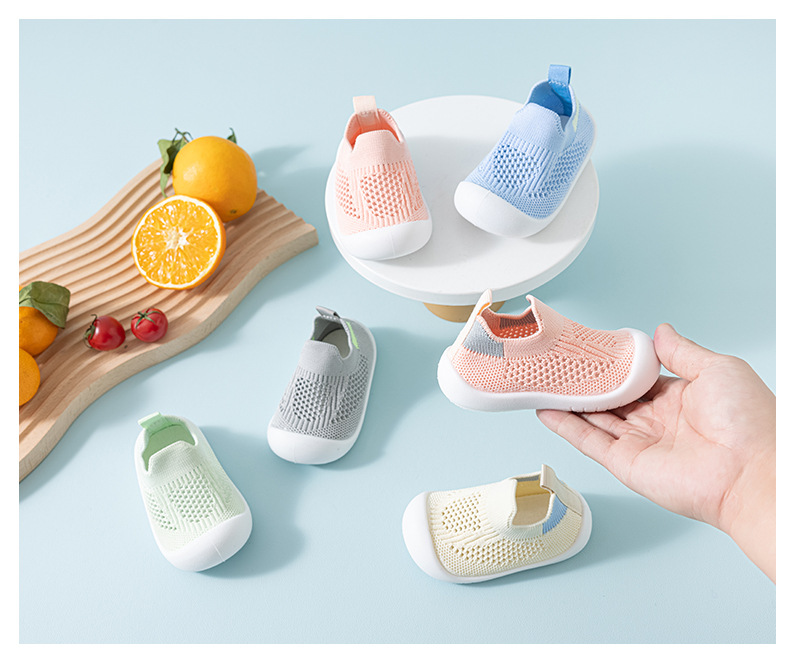 아기 유아 신발, 부드러운 밑창, 플라이 니트 미끄럼 방지 통기성 양말, 실내 및 실외 아기 봄 여름 바닥 메쉬 신발스토어 가기