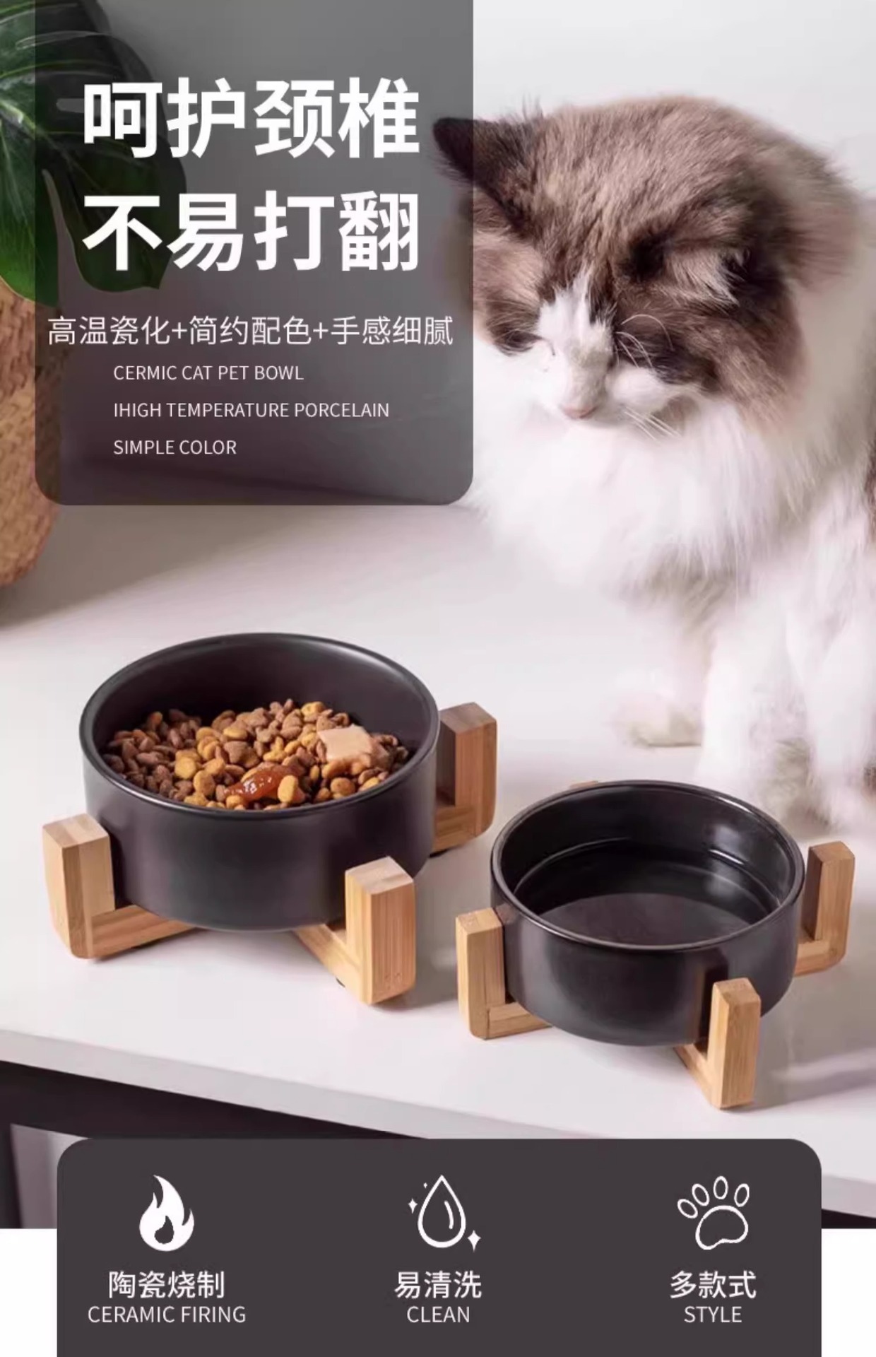 猫碗陶瓷高腳