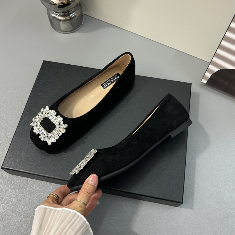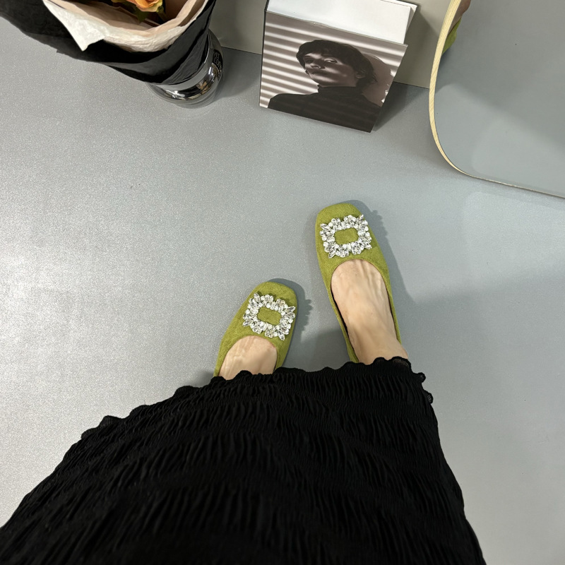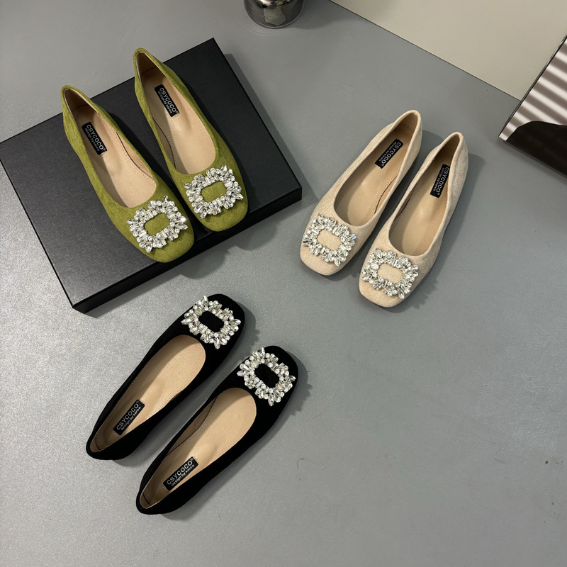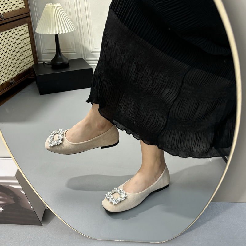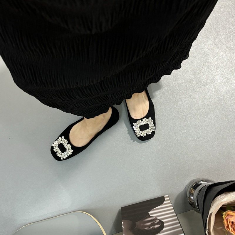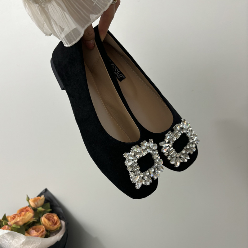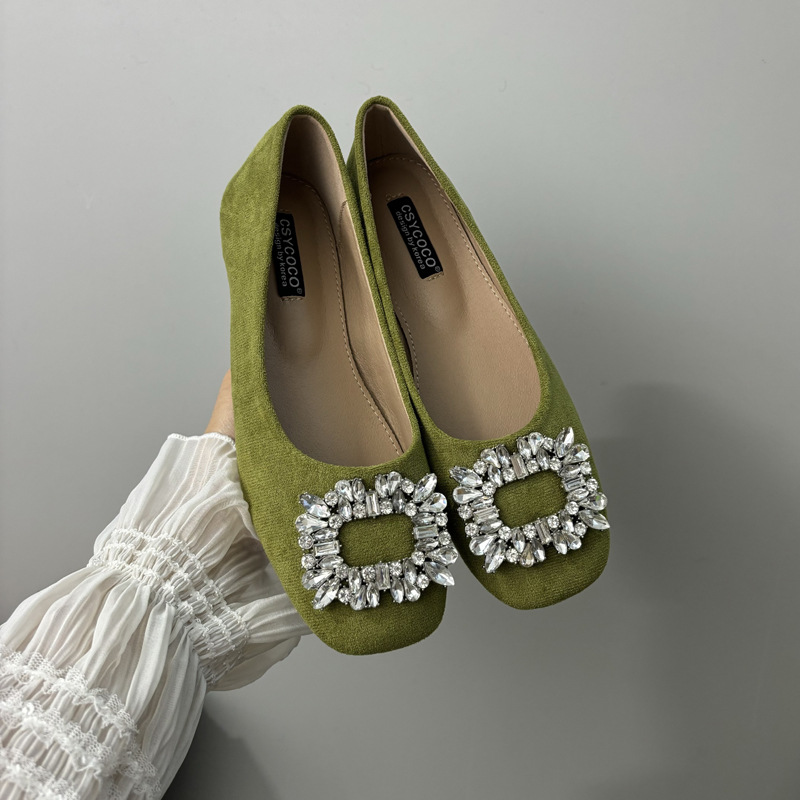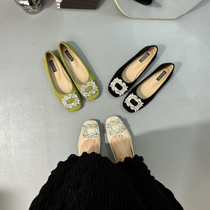 라인스톤 사각 버클 플랫 프렌치 스타일 여성화 2026 봄 심플하고 세련된 슬립온 다용도 워크 슈즈
