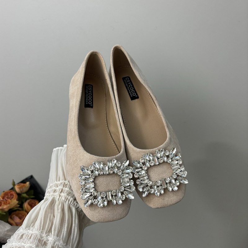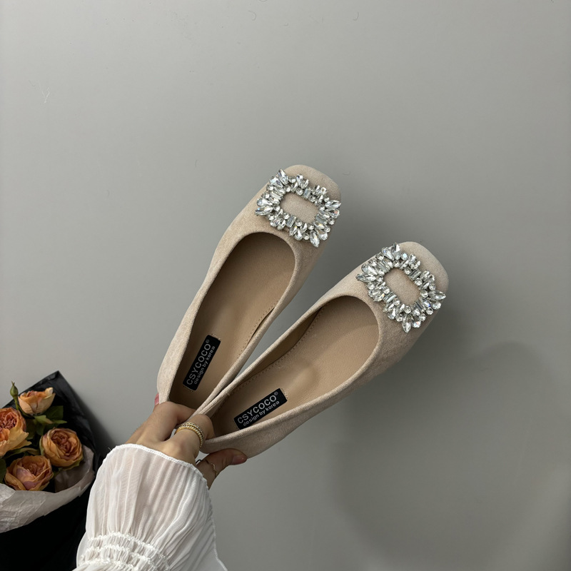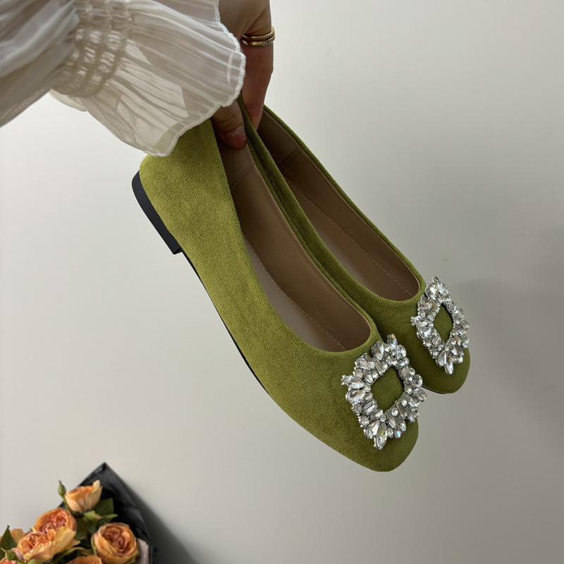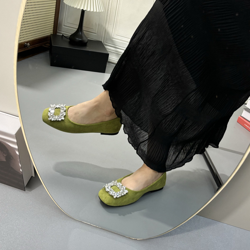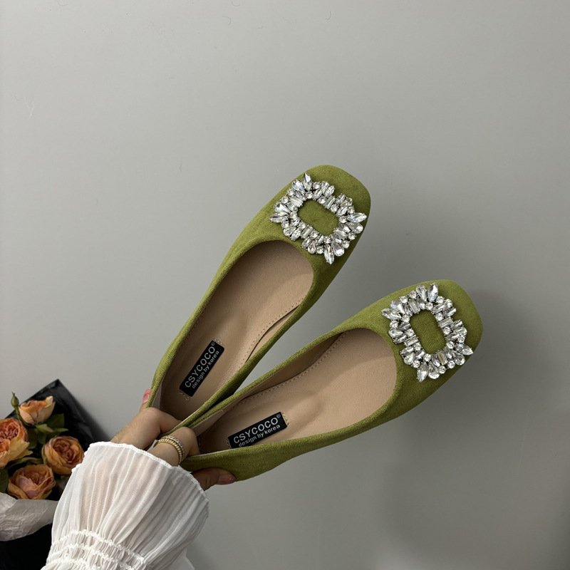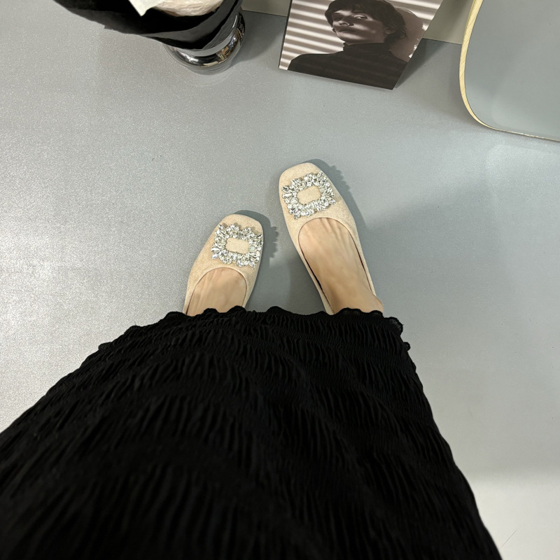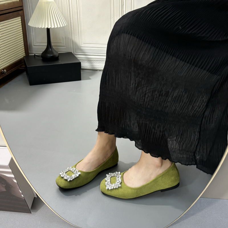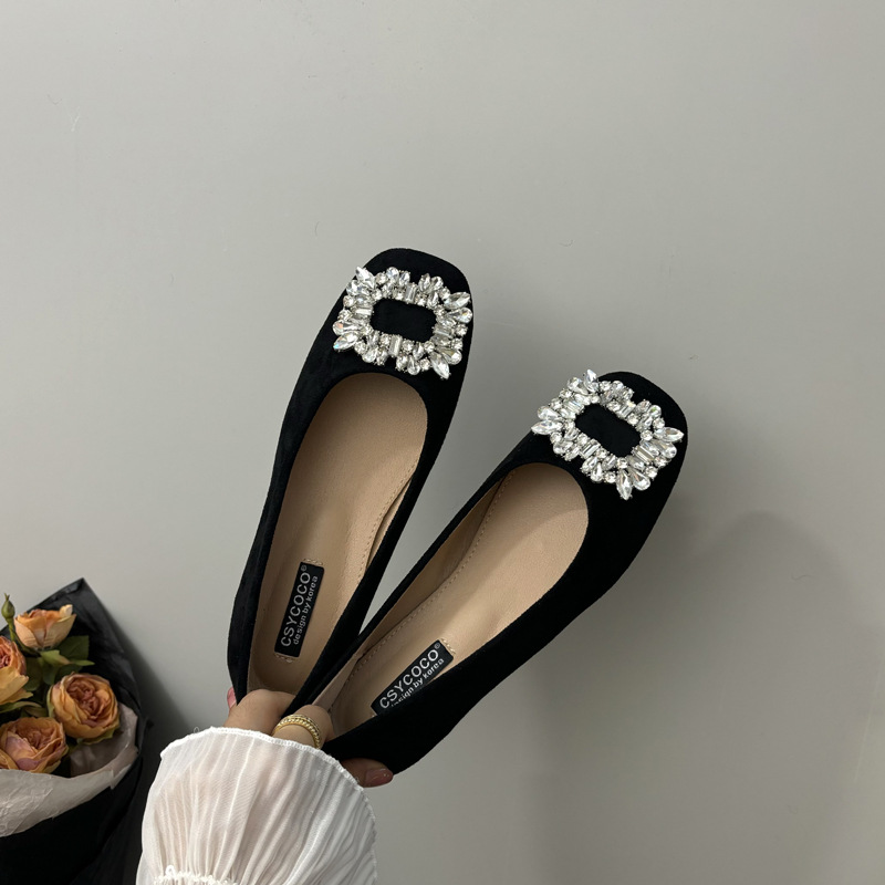 라인스톤 사각 버클 플랫 프렌치 스타일 여성화 2026 봄 심플하고 세련된 슬립온 다용도 워크 슈즈