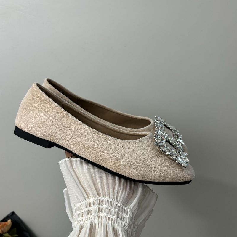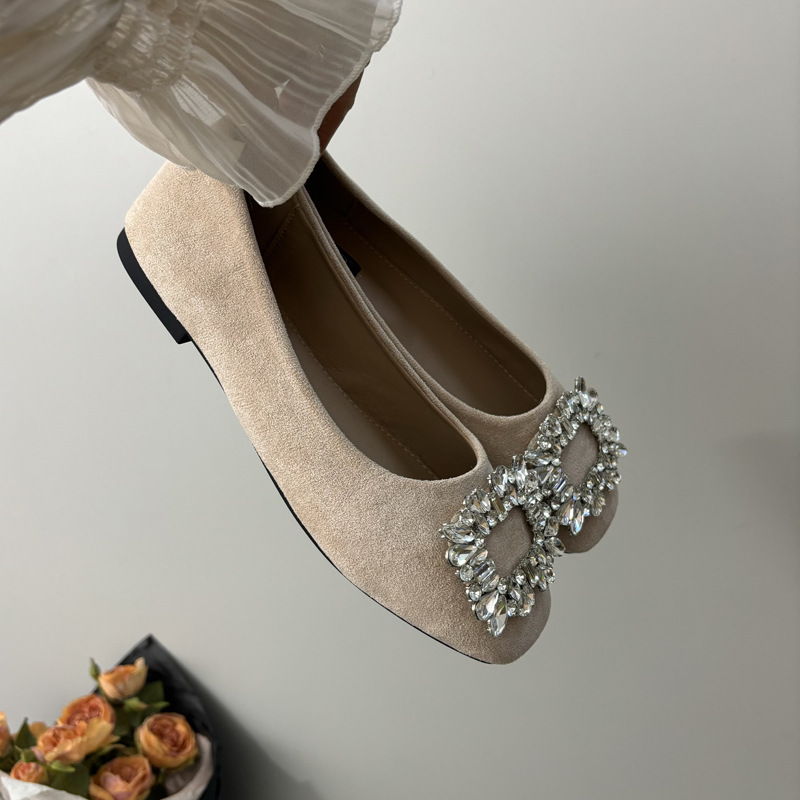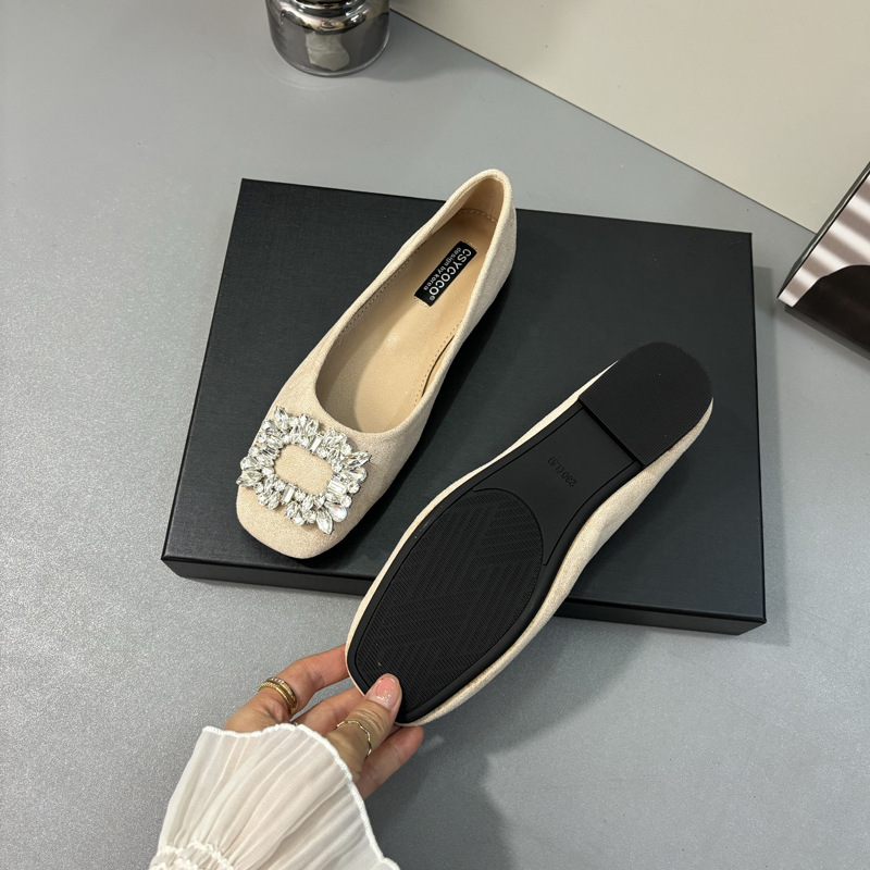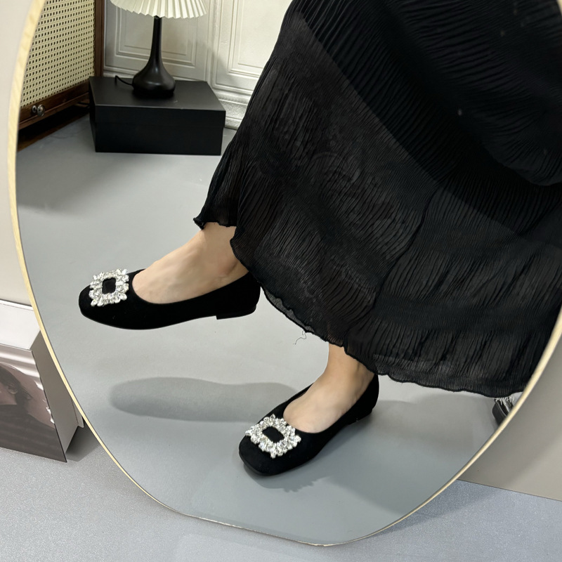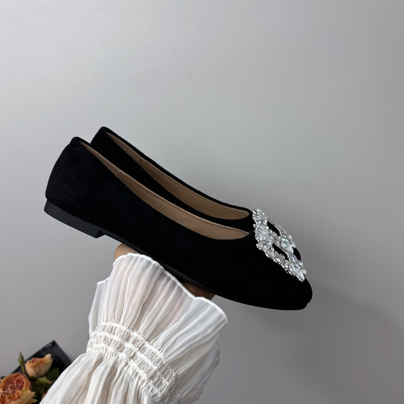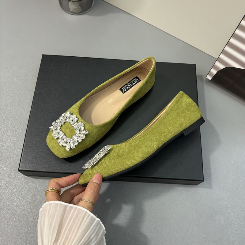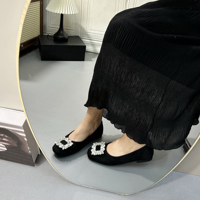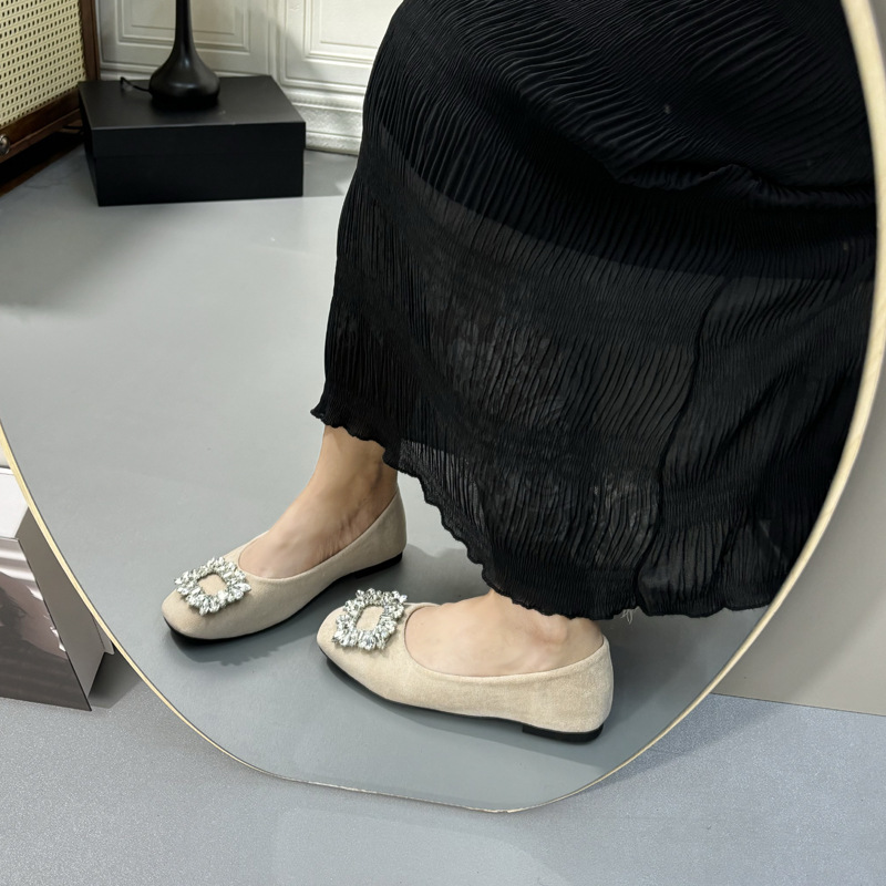 라인스톤 사각 버클 플랫 프렌치 스타일 여성화 2026 봄 심플하고 세련된 슬립온 다용도 워크 슈즈