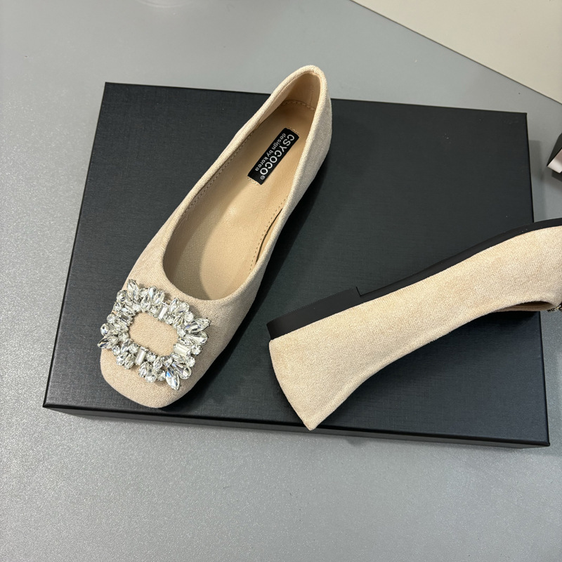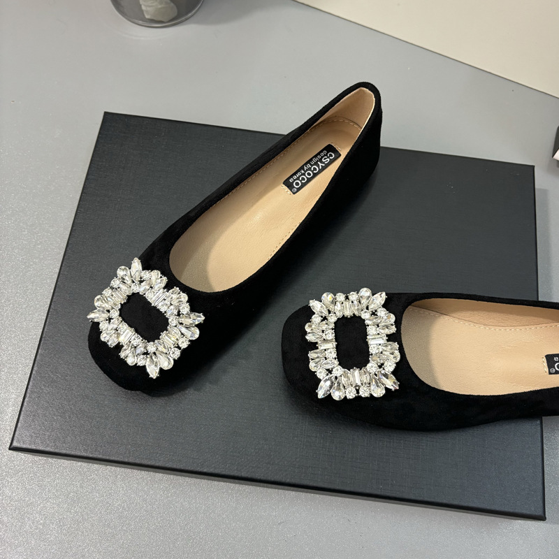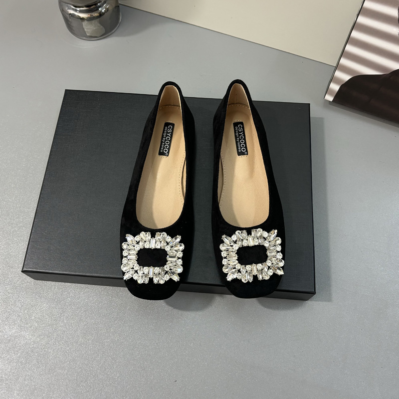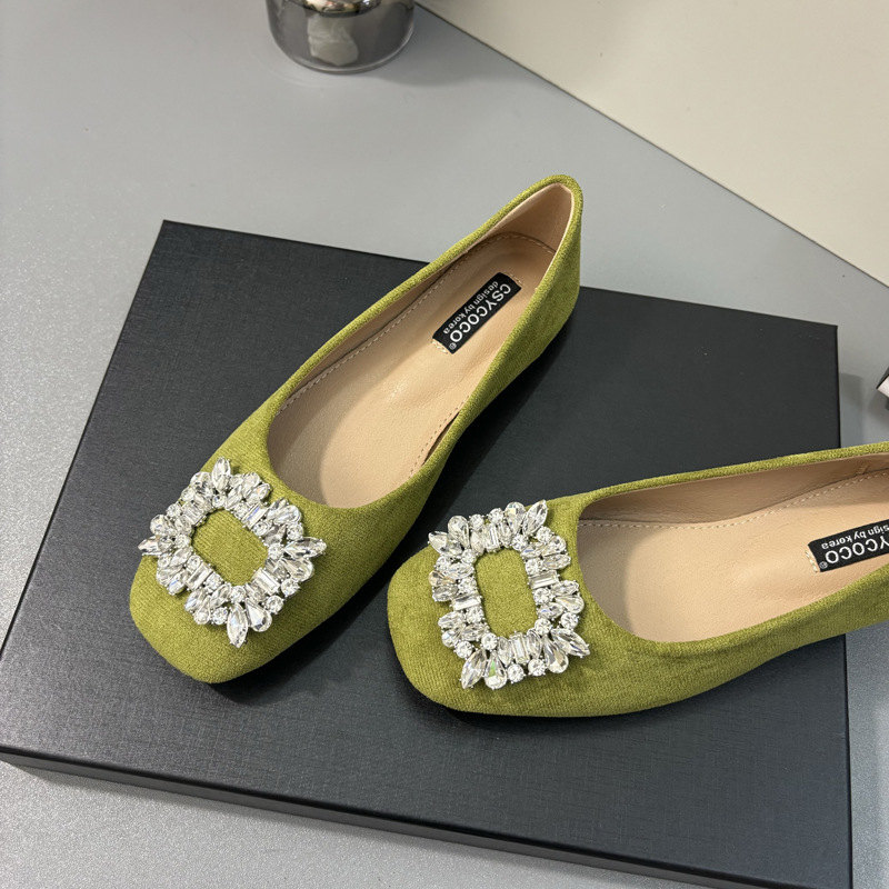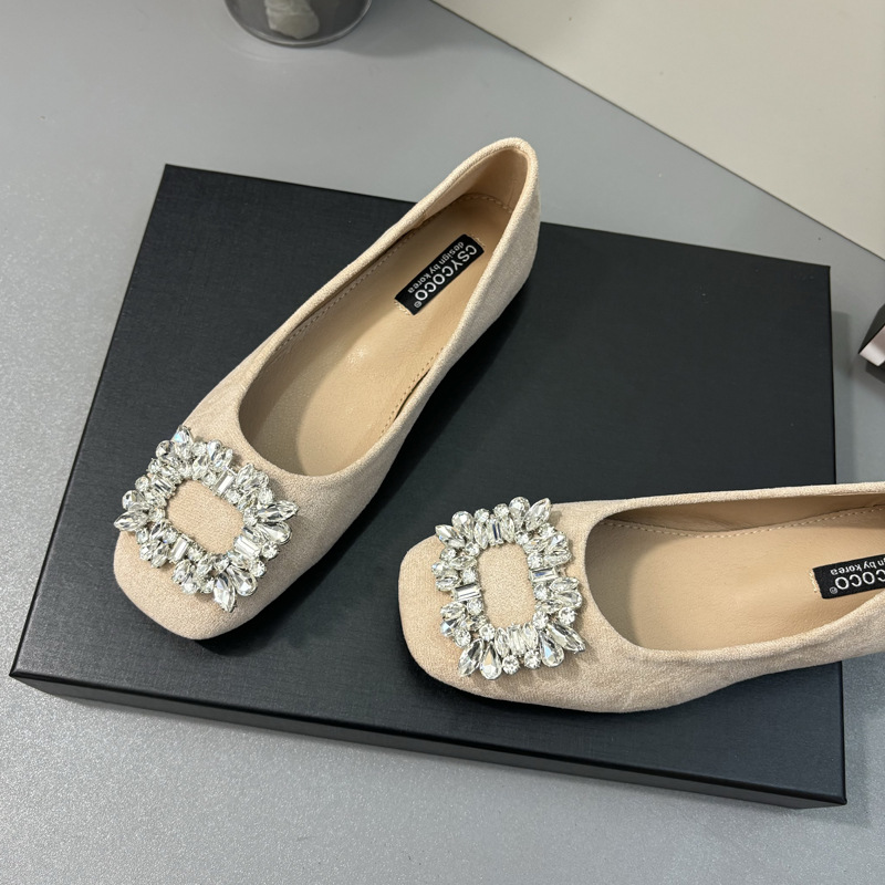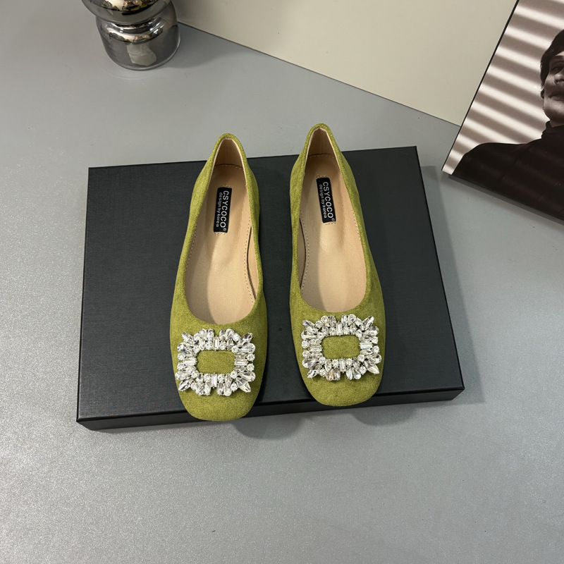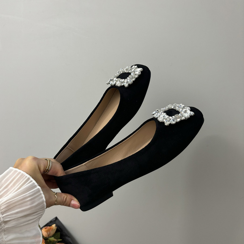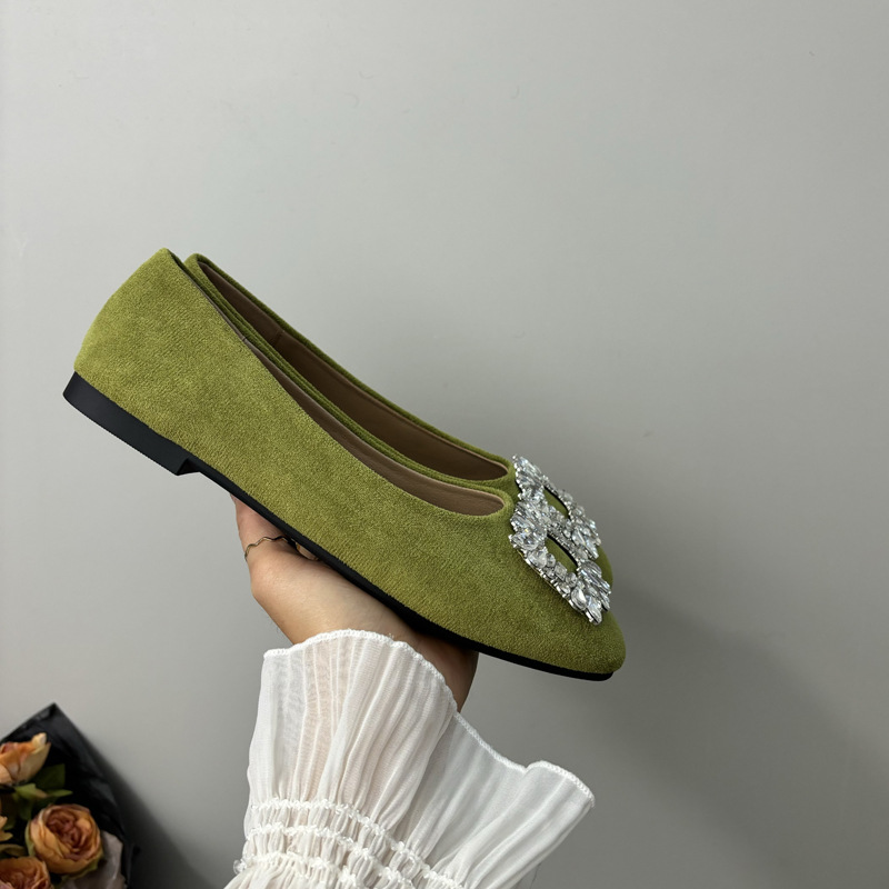 라인스톤 사각 버클 플랫 프렌치 스타일 여성화 2026 봄 심플하고 세련된 슬립온 다용도 워크 슈즈