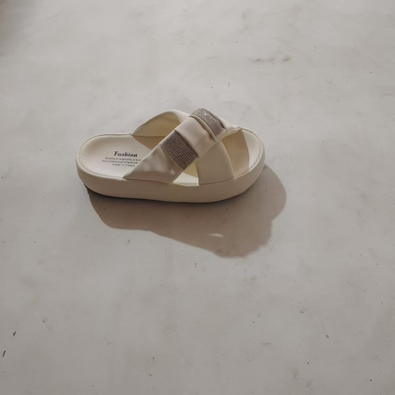 비치 여성 신발 2024 여름 새로운 의상 라인스톤 미끄럼 방지 소프트 하단 캐주얼 올 매치 두꺼운 슬리퍼