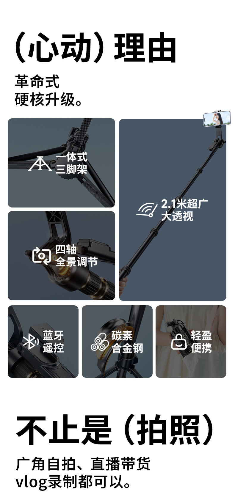 • 리모콘 + 보관 가방 포함 2.1M [탄소강이 더 안정적입니다. ☆ 4축 범용 손떨림 방지]