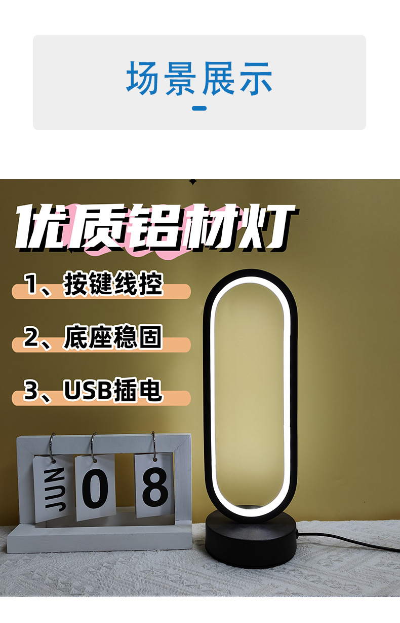 현대 간단한 패션 링 활주로 테이블 램프 침실 연구 침실 거실 기숙사 희미한 장식 야간 조명